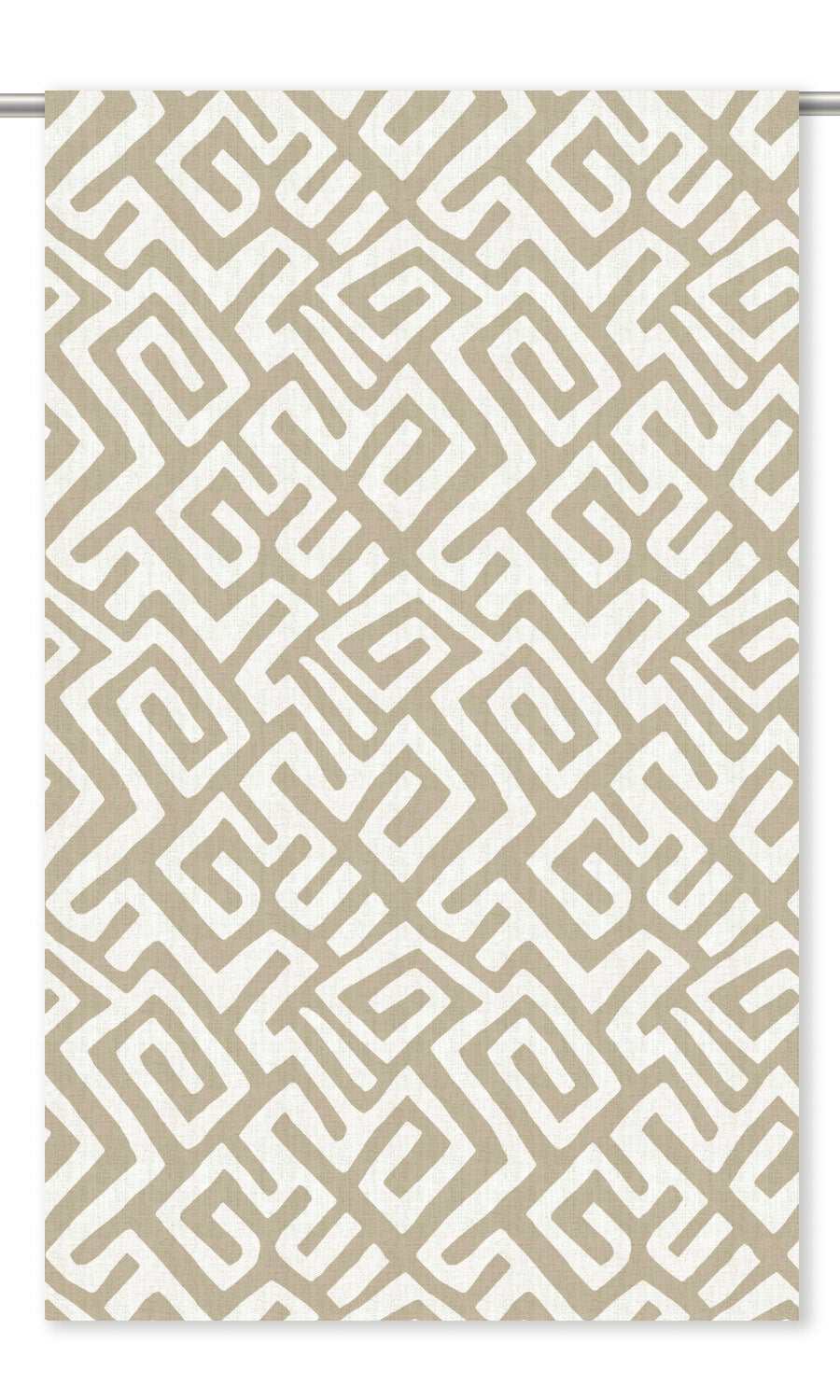 Its Greek-key-inspired maze pattern that trades rigid geometry for asymmetrical lines, giving the time-honored motif a modern twist that feels refreshingly carefree