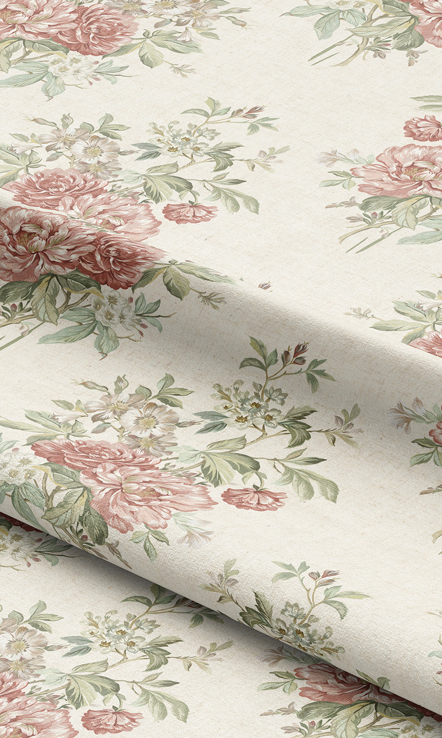 - Its delicate nosegays of roses and asters, conjuring the timeless romance of a sunlit English garden