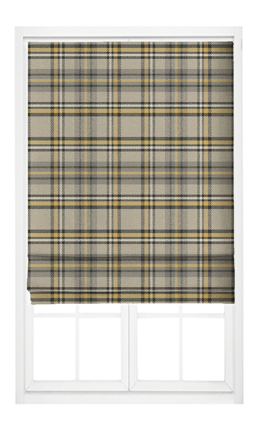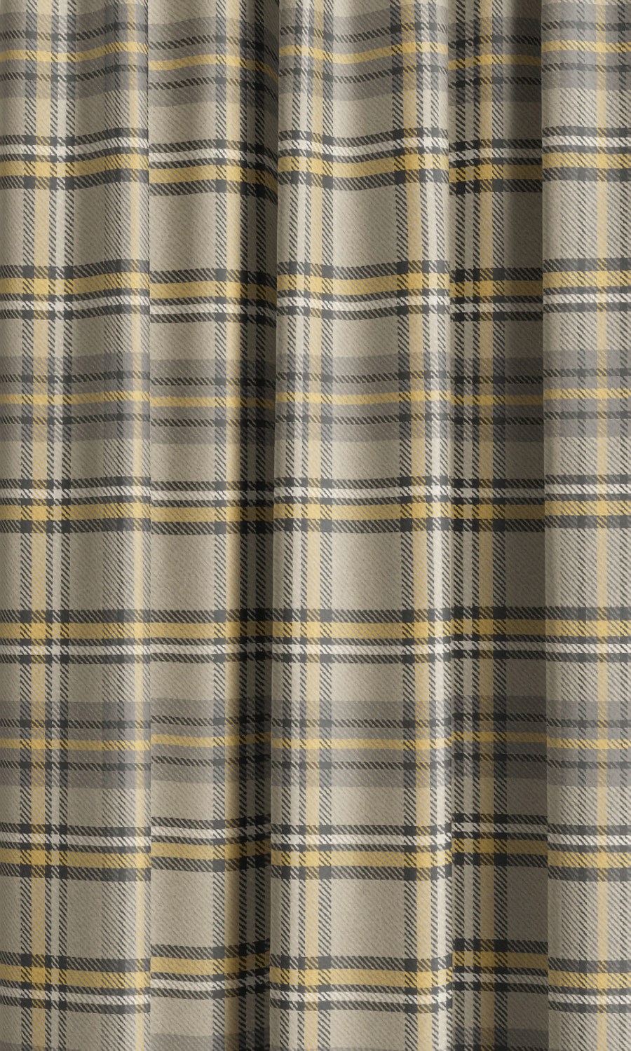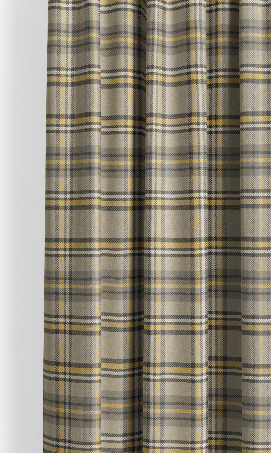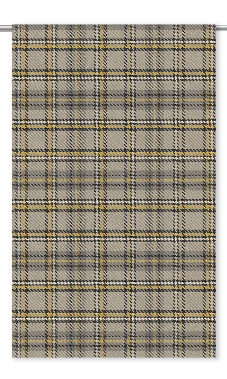 'Log House' Fabric Sample (Taupe/ Dark Umber/ Mustard Yellow)