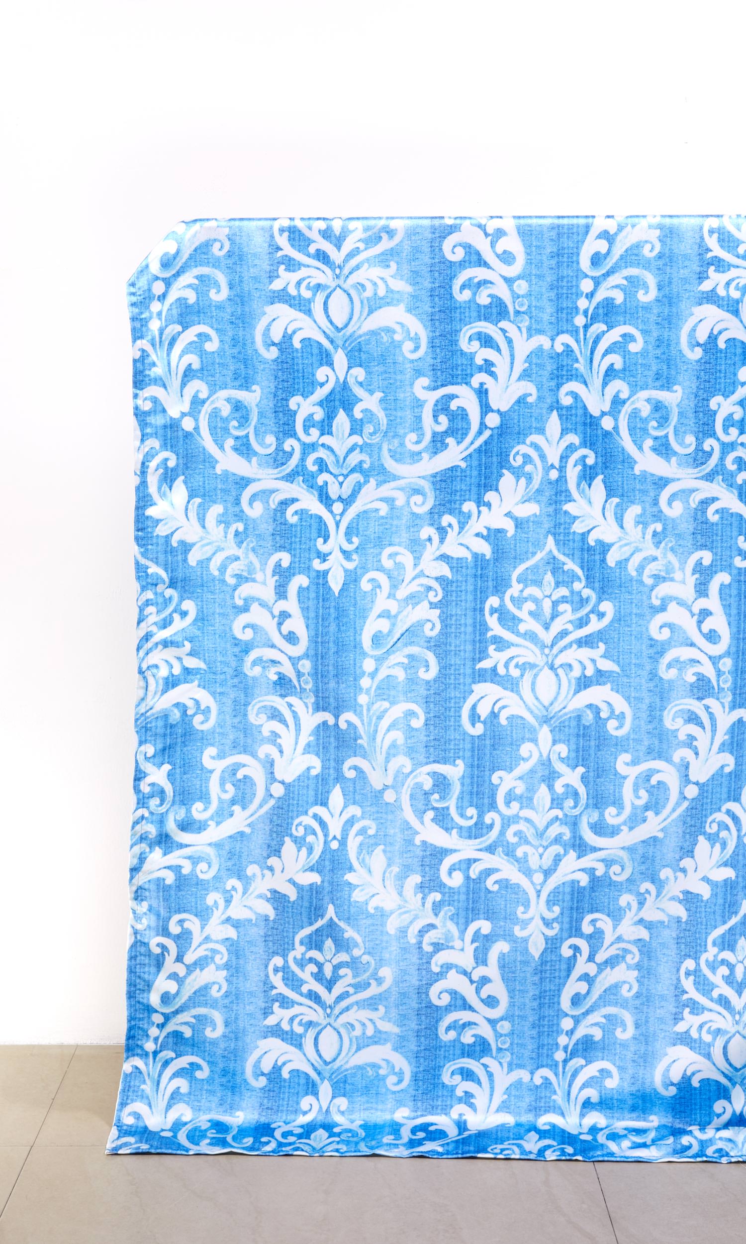This gorgeous printed fabric gives a magnificent modern twist to a beautiful baroque trellis window pattern. A twin tone backdrop of sky blue and azure blue is reverse printed in white with decorative details. Very summery and absolutely riveting!