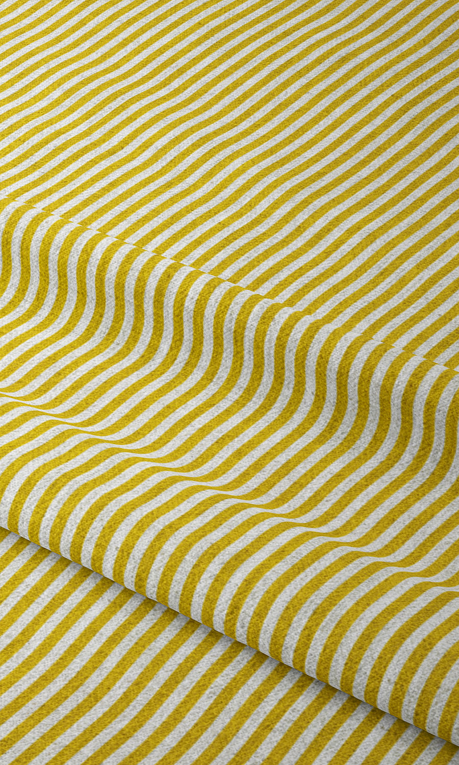 Update your decor with this fresh fabric that features a charming pin-stripe pattern on a rich herringbone weave base. Offered in sunny shades of sunflower yellow and eggshell white, this fabric will add an enlivening dimension to your kitchen or bedroom when fashioned into modern style drapes roman shades. While its repeating stripes make it a great candidate for windows that need optical-elongation, its vibrant yellow makes it wonderfully suited to cottage-chic and contemporary decorative plans.
