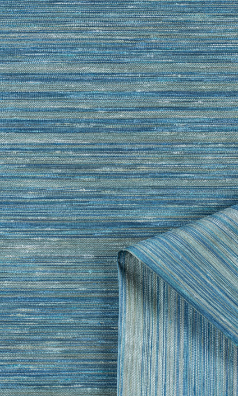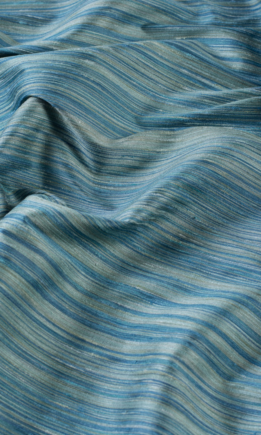 Fleeting ripples of scintillating waters. With a blue and grey pattern of striated stripes, Lovely Sail brings tone-on-tone elegance accompanied by a soft luster and slubbed texture. Its versatile and quiet pattern on a faux silk lends you an excuse to add color to a neutral-hued modern home or pattern to a man's den with subtlety.
