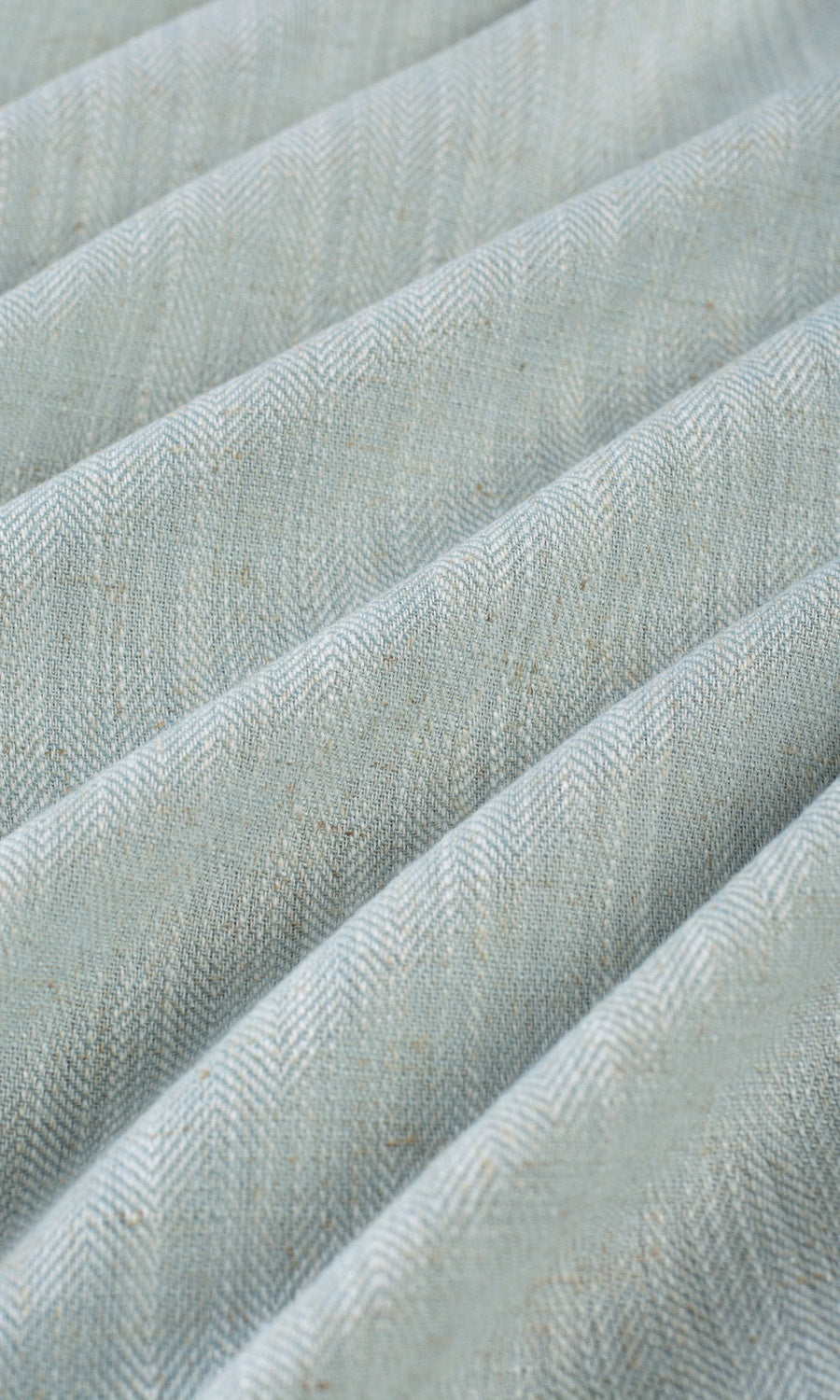 This lightweight powder blue beauty speaks aplenty with the softest of whispers. Its soft pastel hue is a distraction-free stage for a rich texture comprising the slubs of linen and the herringbone weave to shine. Gently diffusing light, 'Macaw' paints the interiors of the home with dramatic moire shadows. Perfect for a coastal home to show its rustic leanings and sea-inspired palette, this semi-sheer linen maintains its size and shape intact by combining with polyester, making it ideal for humid locales and water-prone rooms like kitchens and bathrooms if left unlined.