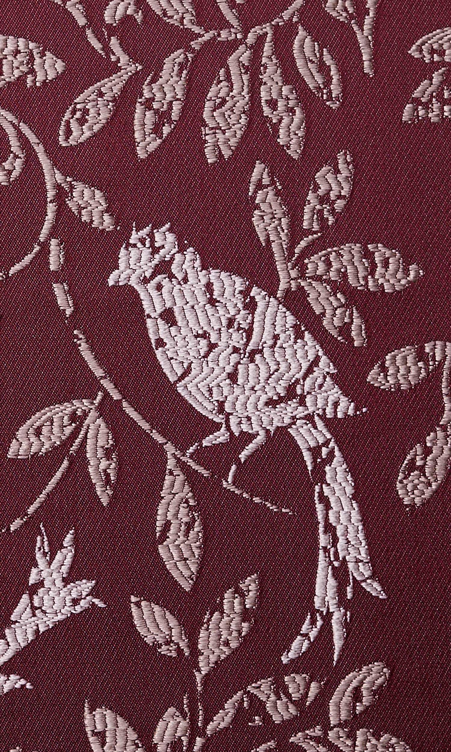 Give your rooms an old world charm with this jacquard woven fabric. Its elegant bird and foliage design in old burgundy, dusty rose pink and soft white hues is inspired by vintage French drapery. Perfect if you love country chic decor!