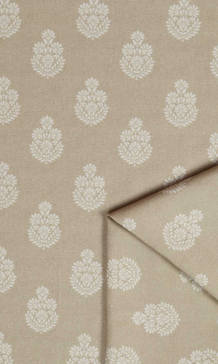 A floral with an old-world charm! Bearing the simple elegance of block print motifs and its invaluable ingredient of the human touch, Mandana brings you ethnic Indian florals in a neutral white-on-beige color scheme. Ideal for minimalist homes seeking an inviting eclectic touch, it imbues spaces with understated elegance and a touch of cultural richness.