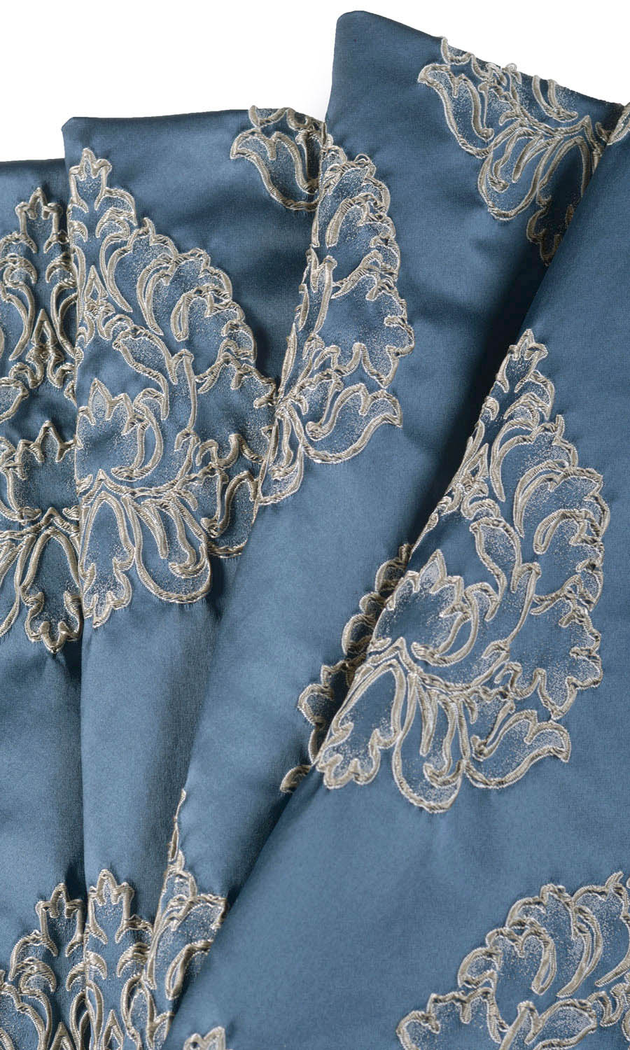 - Use trims as a finishing touch: Carry forward the elaborate adornment of the damask pattern by making the decorative addition of a sumptuous tassel trim or fringe trim to the bottom hem of your roman shade.