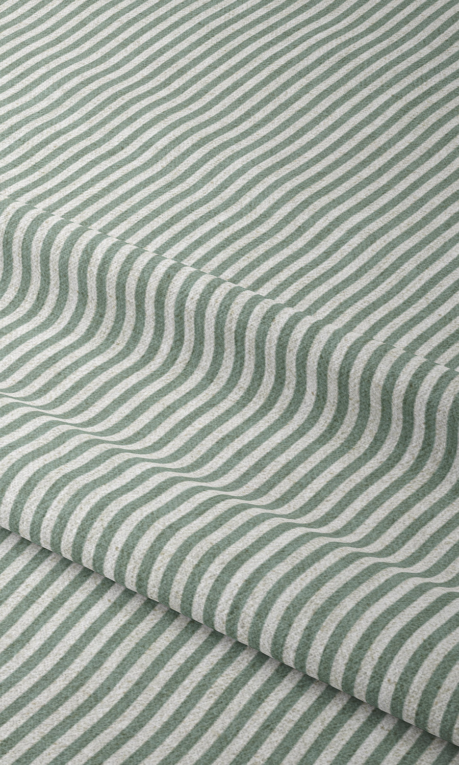 Update your decor with this fresh fabric that features a charming pin-stripe pattern on a rich herringbone weave base. Offered in springtime shades of duck egg blue and eggshell white, this fabric will add an enlivening dimension to your kitchen or bedroom when fashioned into modern style drapes roman shades. While its repeating stripes make it a great candidate for windows that need optical-elongation, its vibrant green makes it wonderfully suited to cottage-chic and contemporary decorative plans.