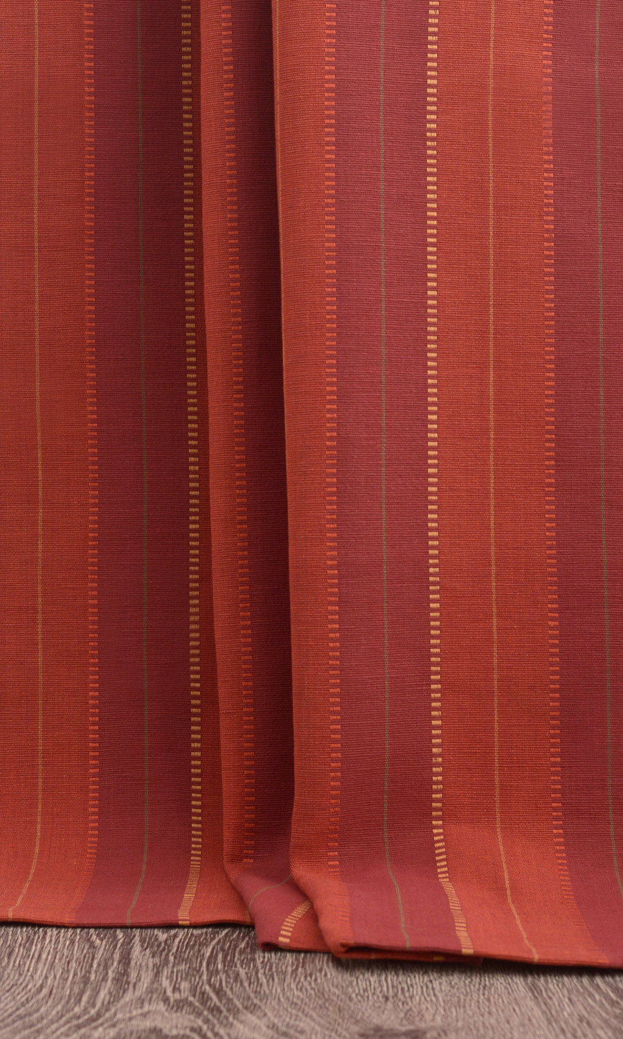 Part of our swoon-worthy cotton collection, Melody Iris features a vertical woven stripe with plenty of interest. With a raw, softly tactile feel and its body of warm tones of red, Melody Iris feels like a modern take on cotton, so cozy and full of flavor. This medium weight cotton falls beautifully and never fails to impress - no matter what the heading style - from the fullness of pinch pleats to the minimalist look of an eyelet heading.