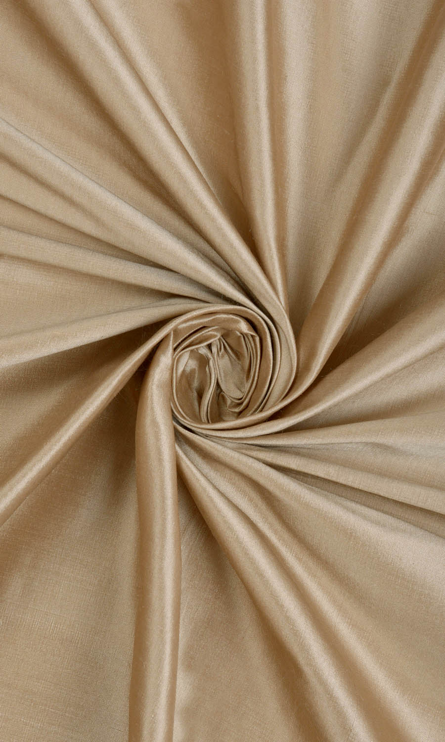 If real silk were to go in a dream state, it would surely look like Melon Aura. This 100% pure silk drapery fabric is a soft spruce brown color that seems to glisten. Gentle, mellow and rich, it is the perfect complement for a decor that makes a quiet yet unmistakable statement of old world class.