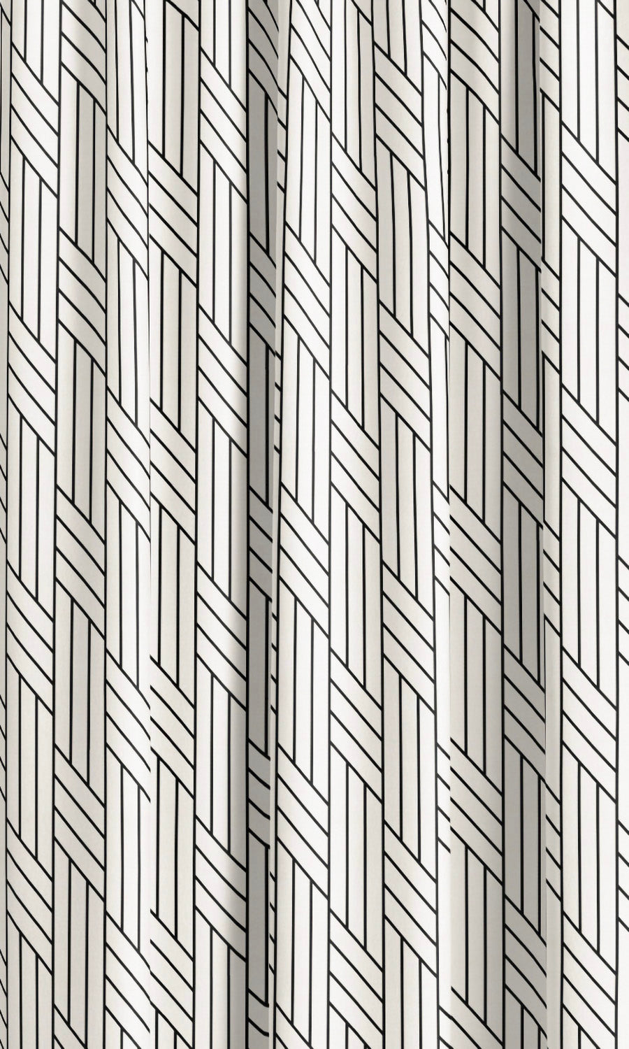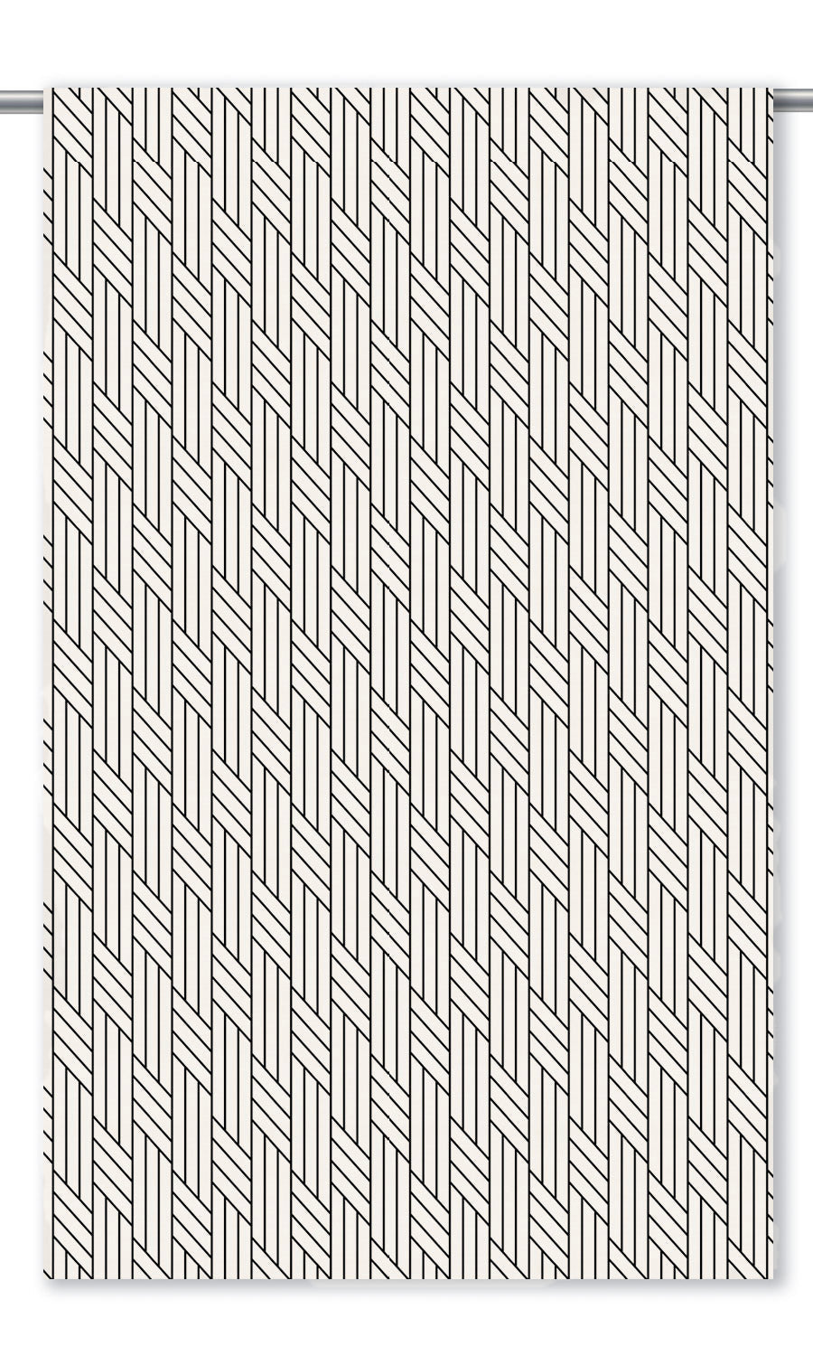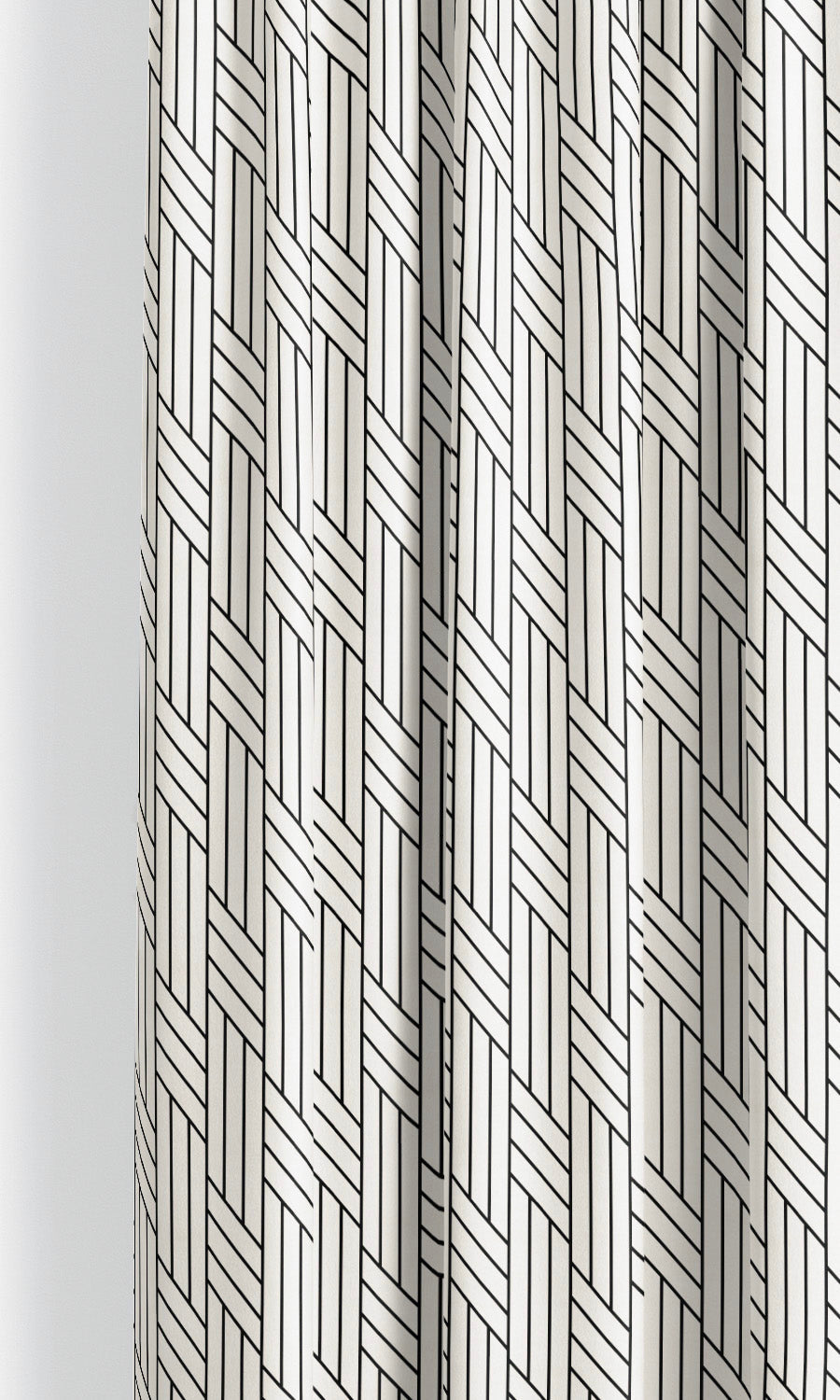 - Keep pattern play modern and sleek: Introduce Mevia curtains to contemporary, streamlined interiors dominated by a neutral palette and modern motifs. Their geometric print adds interest, depth, and movement while the crisp black and white contrast keeps the palette modern and sophisticated.
