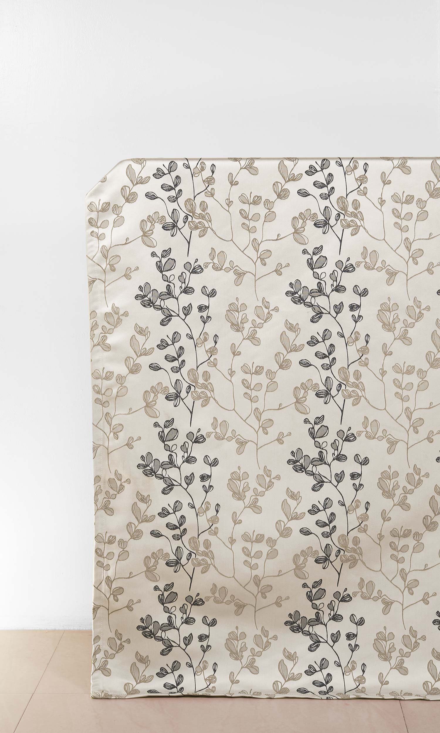 If you like the playfulness of nature-inspired print and also like the perfection of damask, here is the fabric of your dreams. Its white backdrop is etched with a lovely creeper pattern in alternating beige and gray columns highlighted with darker touches. The overall effect is relaxed yet classy. We recommend pinch pleated curtains t offset this design.