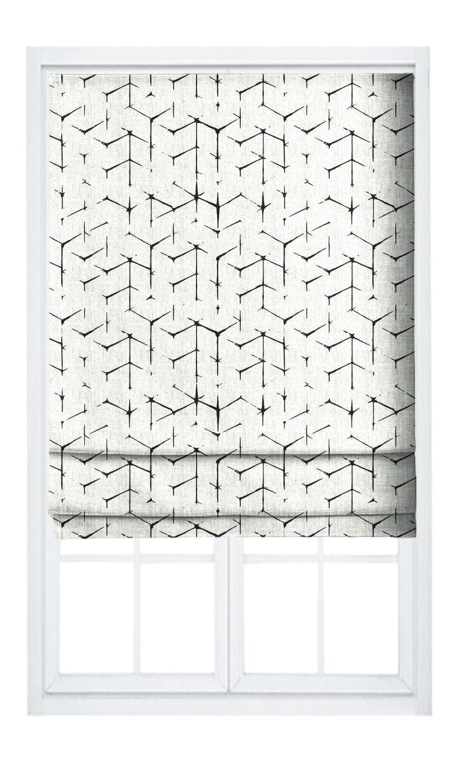 - Choose a modern heading style: Select a heading style that echoes the contemporary flair of Midnight Blanc abstract patterned drapery. Think uncluttered headers, refined silhouettes and chic appeal, such as in our flat panel tops, grommet tops and back tab tops. They fall in straight pleats from top to bottom, offering the perfect canvas for the motif's free-spirited lines to shine.