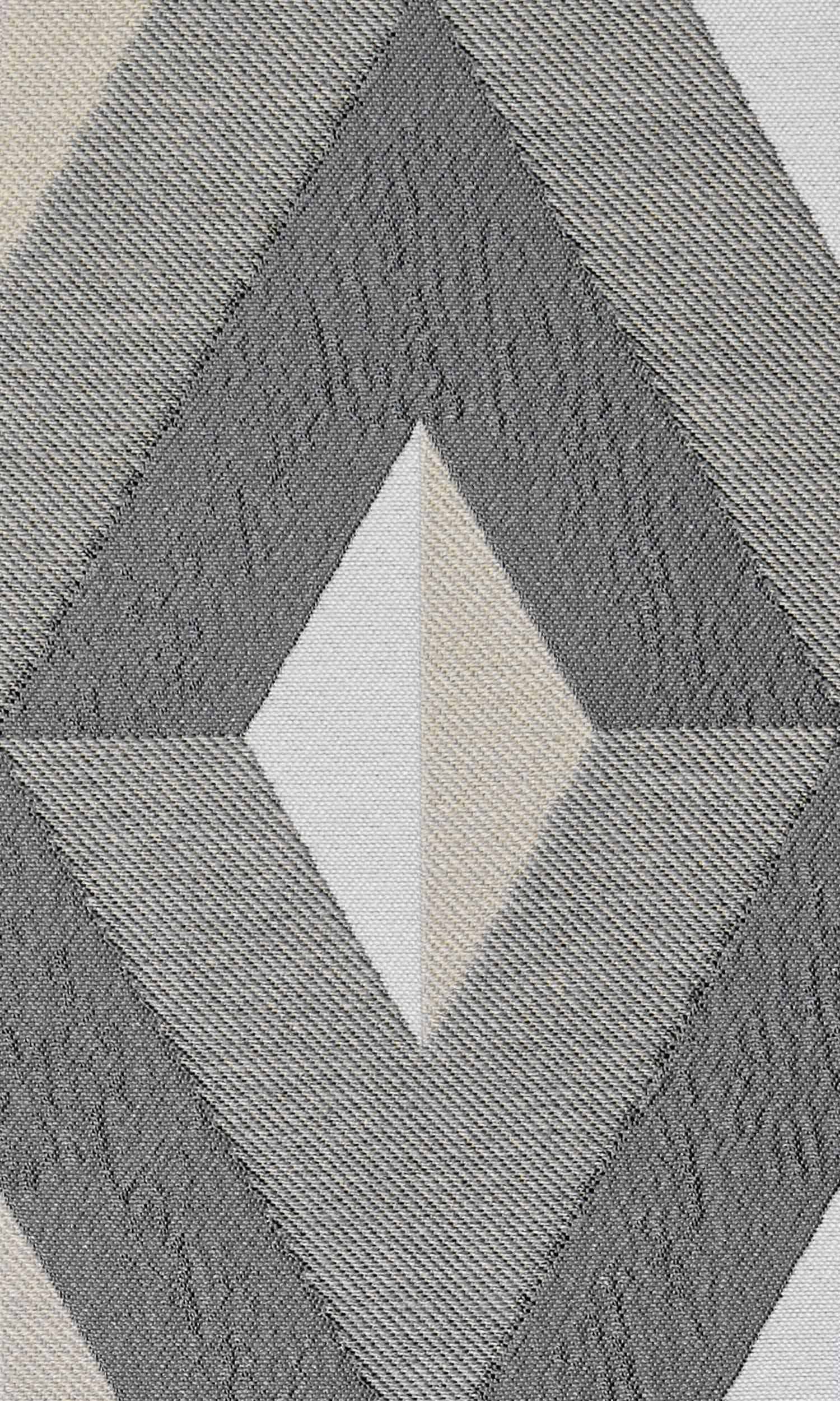 If you are looking for a quality fabric to do up a masculine room, look no further than this handsome fabric. Its edgy lattice and triangle design is accentuated with varying textures and weaves. A tan brown, slate gray and charcoal gray on white color scheme creates a powerful effect.