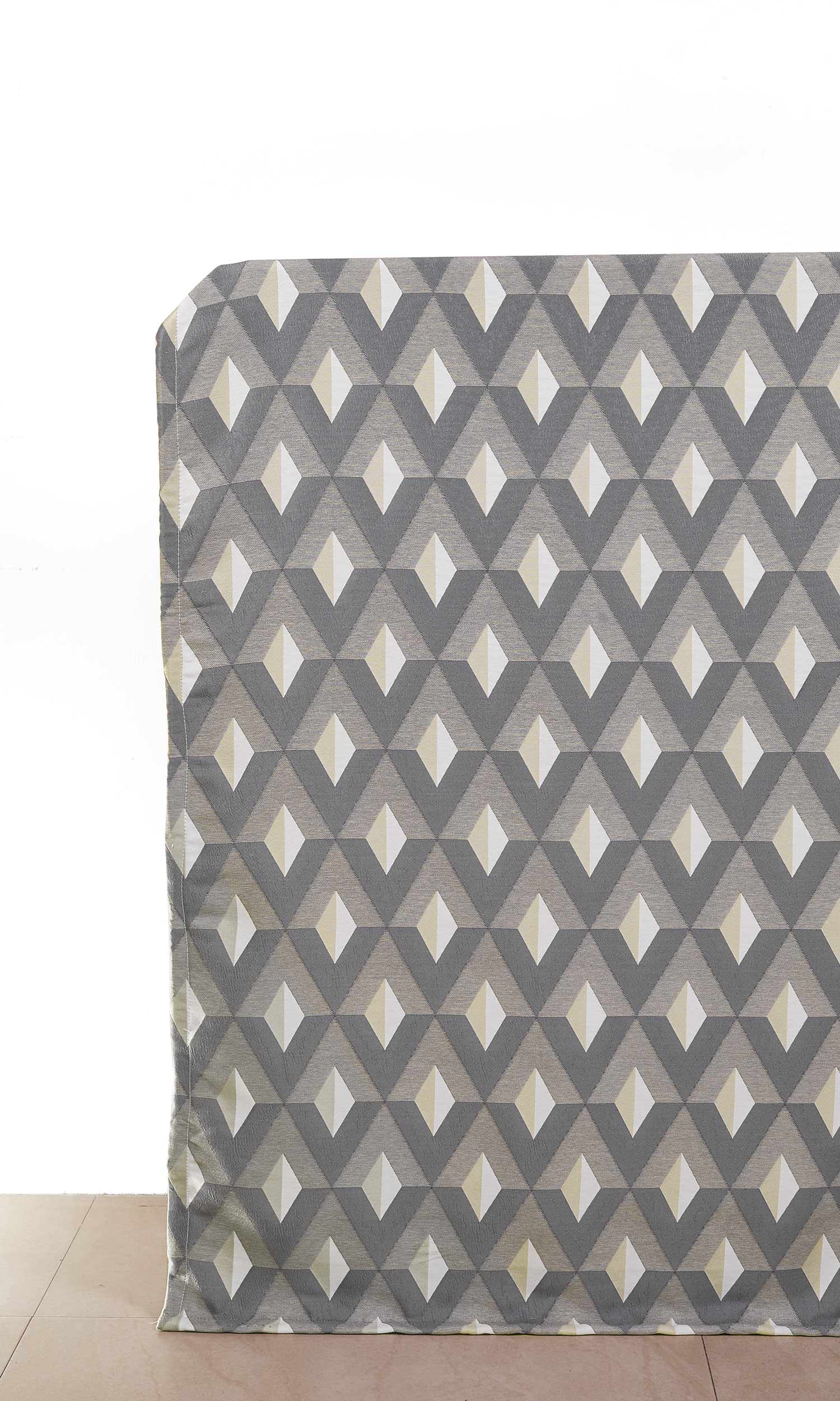 If you are looking for a quality fabric to do up a masculine room, look no further than this handsome fabric. Its edgy lattice and triangle design is accentuated with varying textures and weaves. A tan brown, slate gray and charcoal gray on white color scheme creates a powerful effect.