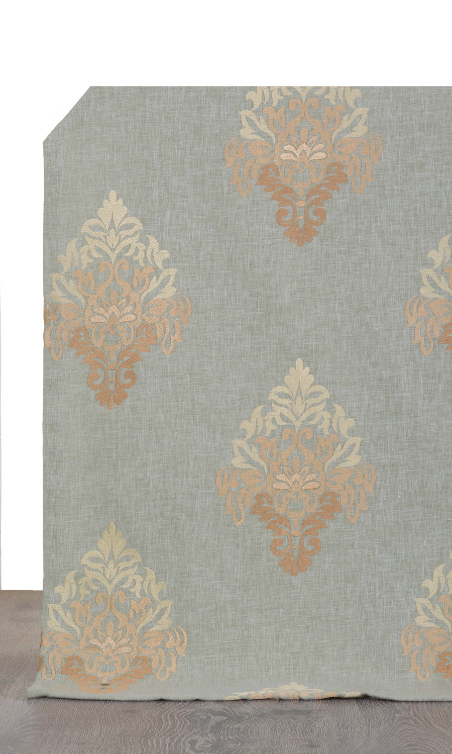 If you like traditional motifs but want a look that jells well with a contemporary decor, Mineshaft is the drapery fabric you must give a second look. The base fabric is a full-bodied blend of cotton, polyester and viscose in gray. It has been given an oversized damask pattern in beige and brown. This fabric strikes the perfect balance between sobriety and lavishness.