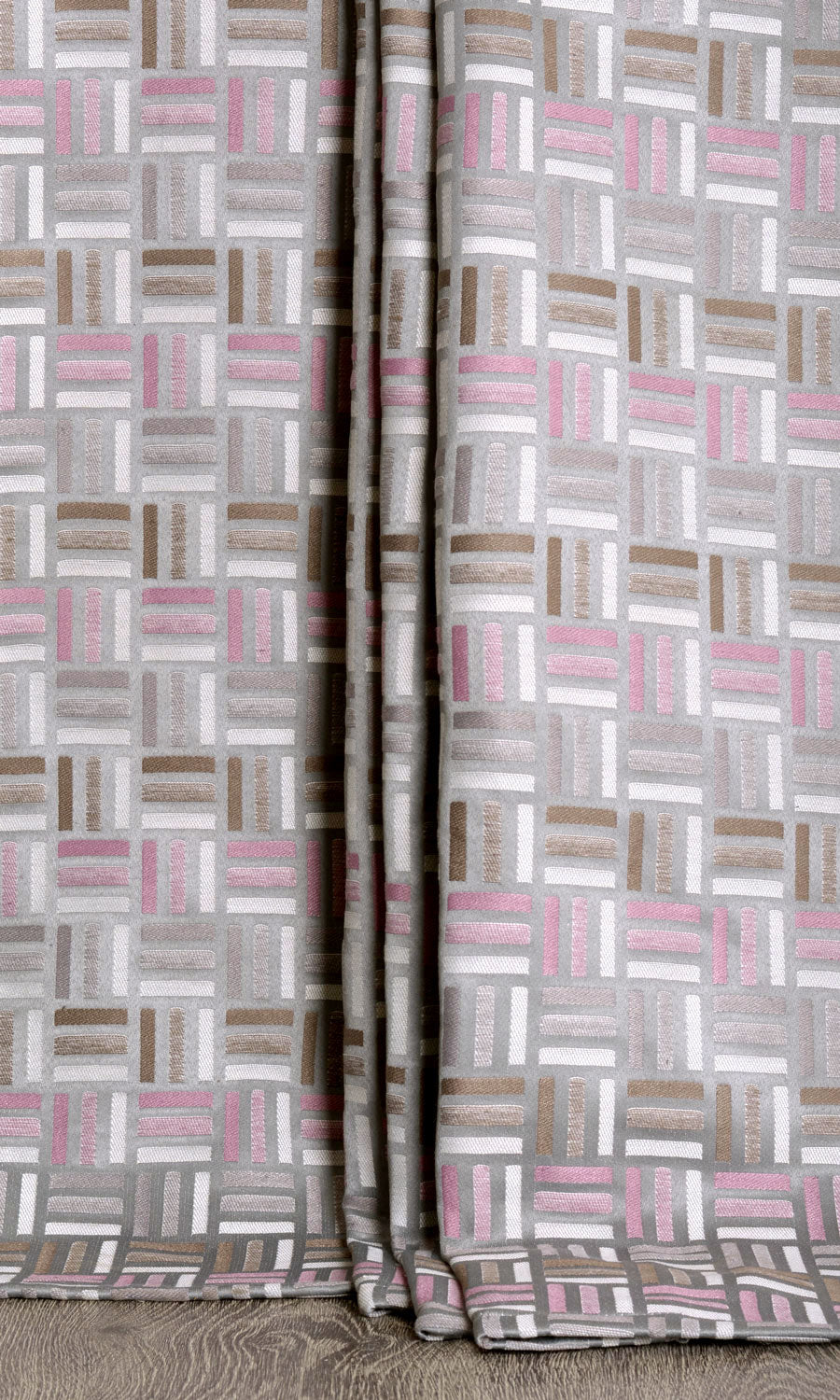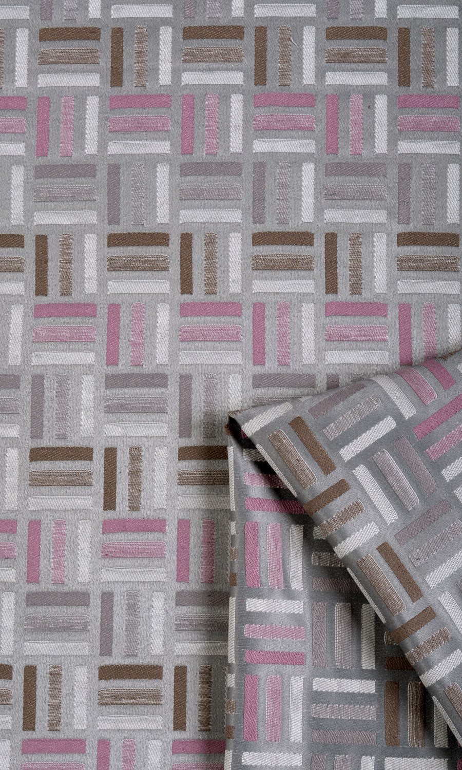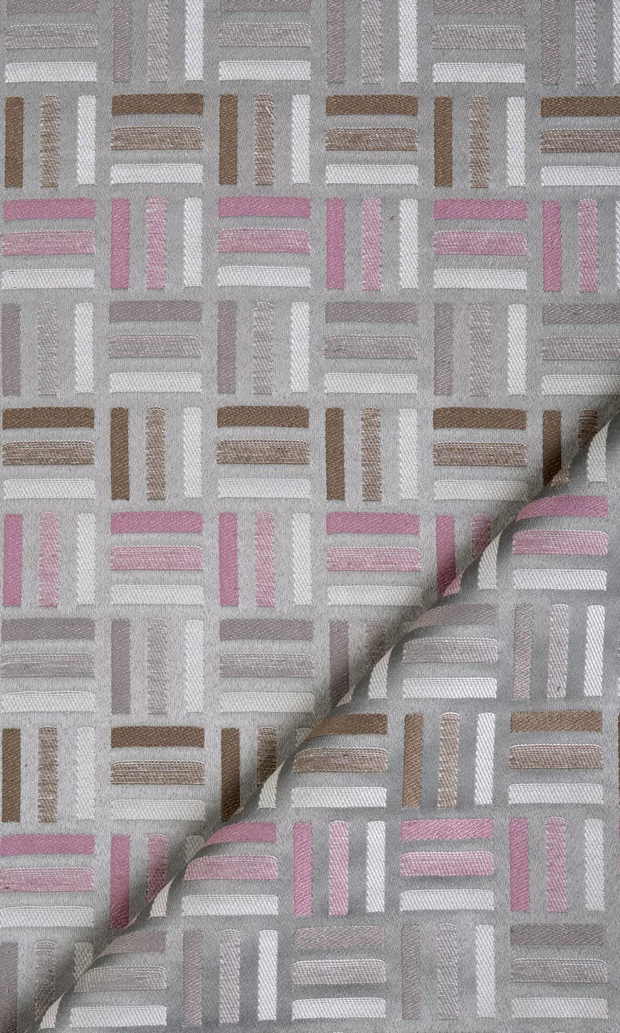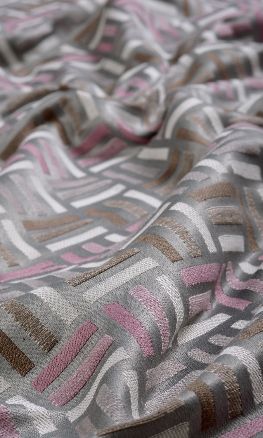 Ladders meet checks in this lovely fabric with shaded effect. The color palette of pink, charcoal grey and brown on a pale grey backdrop is pure elegance. When you want a dynamic pattern and dash of color to add some zing to a space, trust Morning Rays to do the job.