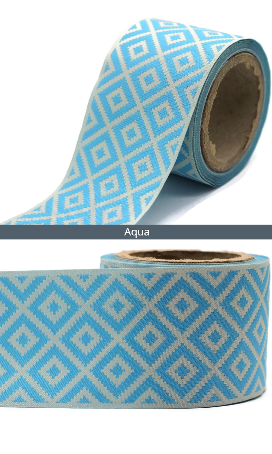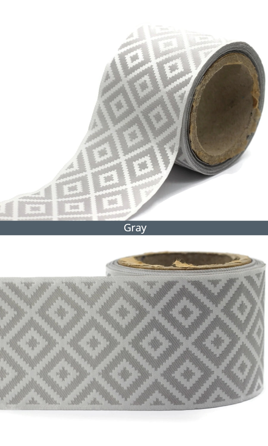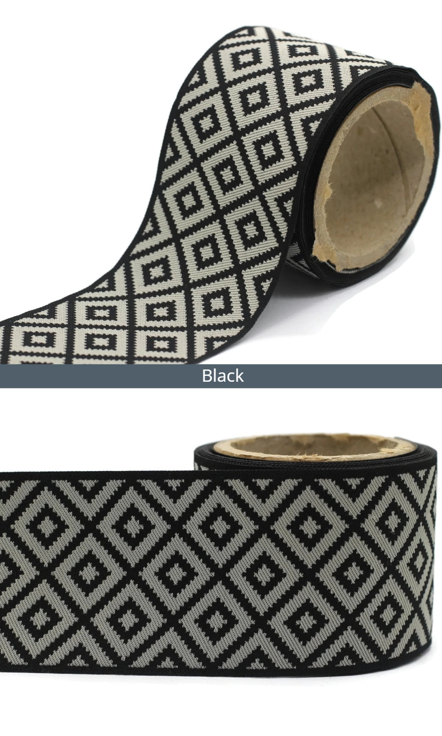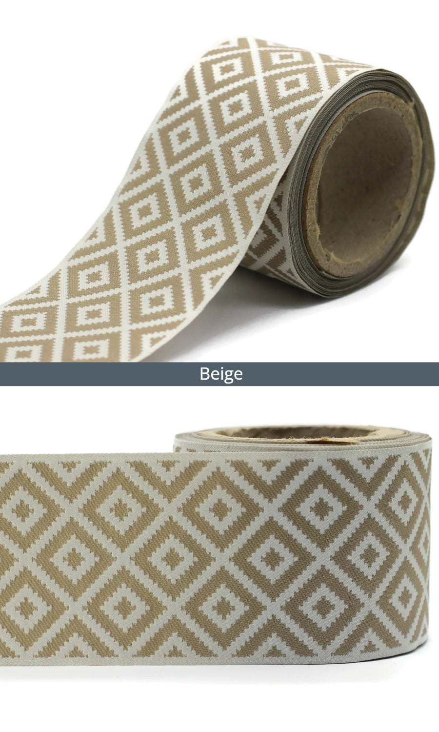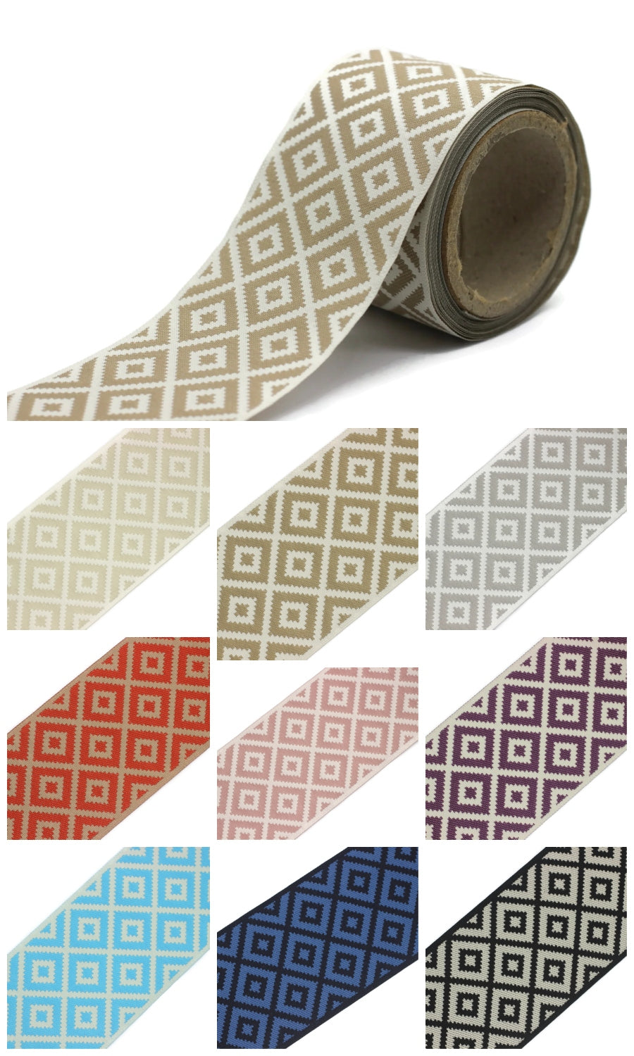 Dress up your custom curtains with a ribbon band trim from our 'Mosaic' collection of jacquard trims.