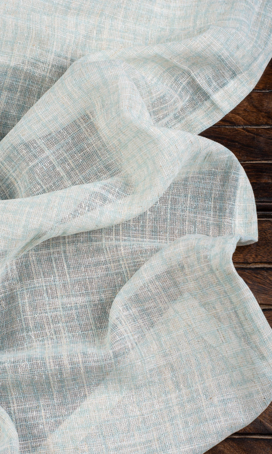 This gauzy powder blue beauty speaks aplenty with the softest of whispers. Its soft pastel hue is a distraction-free stage for a rich texture comprising the slubs of linen and a delicate check pattern to shine. Gently diffusing light, 'Mossy Sand' paints the interiors of the home with dramatic moire shadows. Perfect for a coastal home to show its rustic leanings and sea-inspired palette, this sheer linen maintains its size and shape intact by combining with polyester, making it ideal for humid locales and water-prone rooms like kitchens and bathrooms.