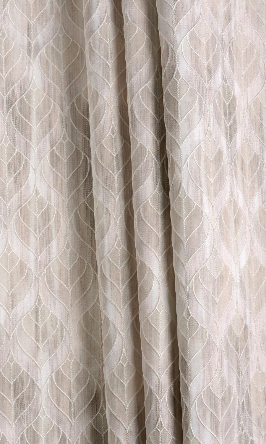 If you want window treatments with restrained use of color and pattern, this drapery fabric with an understated palette and uncomplicated shapes might suit your taste. Embossed outlines of cordate leaves tessellated on a dappled background of grey, white and beige make a beauteous presentation of an organic theme in a modern style. Drapes and curtains in this delicately designed fabric can mingle effortlessly with any decor style.