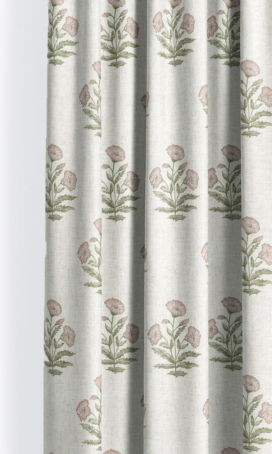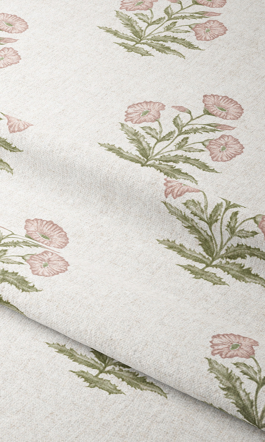 • Its hand-blocked Indian poppy motif, scattering a garden's grace, and stamped with heritage elegance