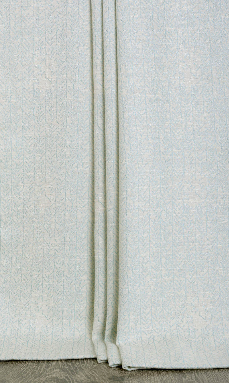 If you prefer minimalism with the barest hint of pattern in your drapery fabric pick, we recommend Nautilus. This off white polycot fabric is patterned with the palest blue for an understated look. The part-geometric, part-impressionist pattern has columns and chevron zigzags. The base fabric has a mildly rough woven look; the pattern also has a smudged feel that looks like a work of art.