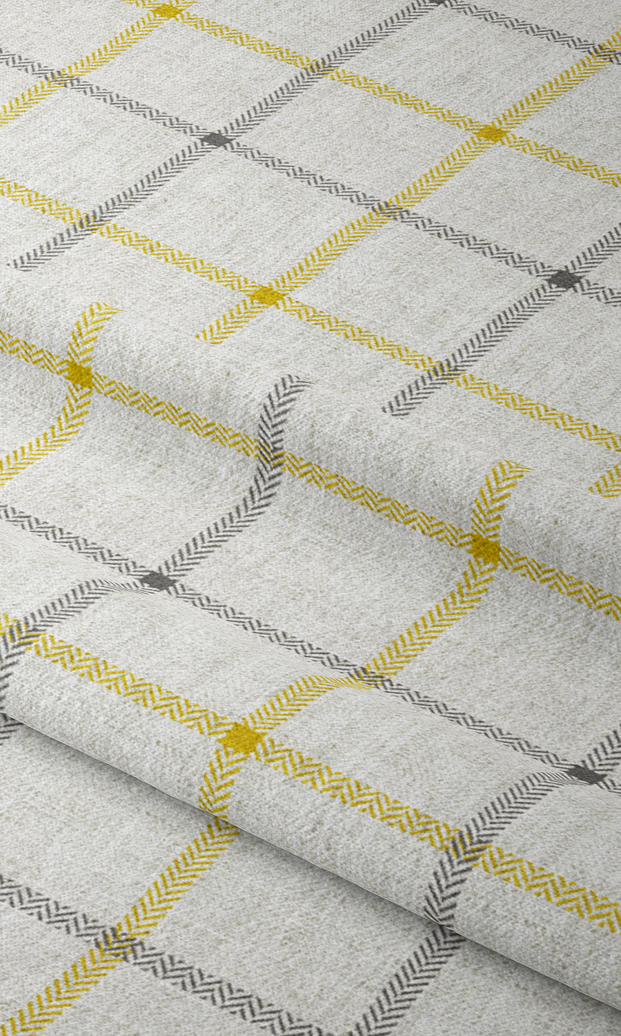 Featuring a big-block plaid pattern of yellow and grey on a tactile linen white - hues that lend a contemporary twist to the otherwise traditional pattern. Whether you're fashioning a mid-century modern living room or a contemporary-chic dining space, you can use this elegant fabric for drapes and shades that never fail to impress.