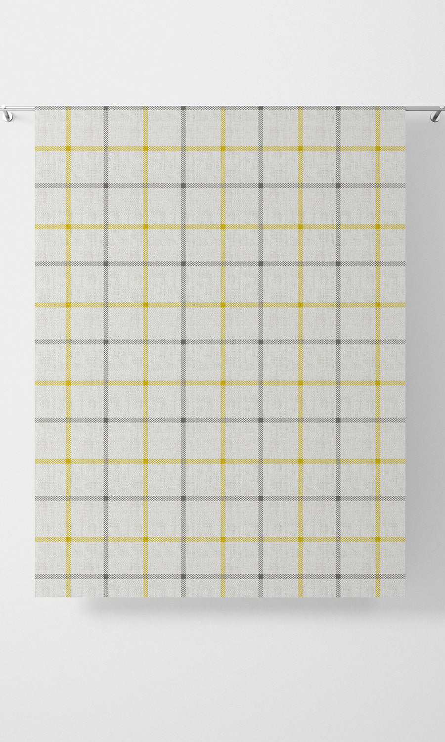 Featuring a big-block plaid pattern of yellow and grey on a tactile linen white - hues that lend a contemporary twist to the otherwise traditional pattern. Whether you're fashioning a mid-century modern living room or a contemporary-chic dining space, you can use this elegant fabric for drapes and shades that never fail to impress.