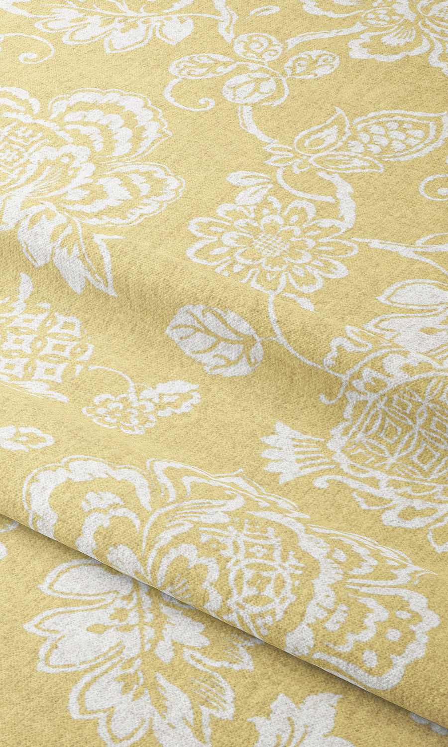 - Its white accents on a corn yellow canvas, that soften any space with their delicate and delightful elegance