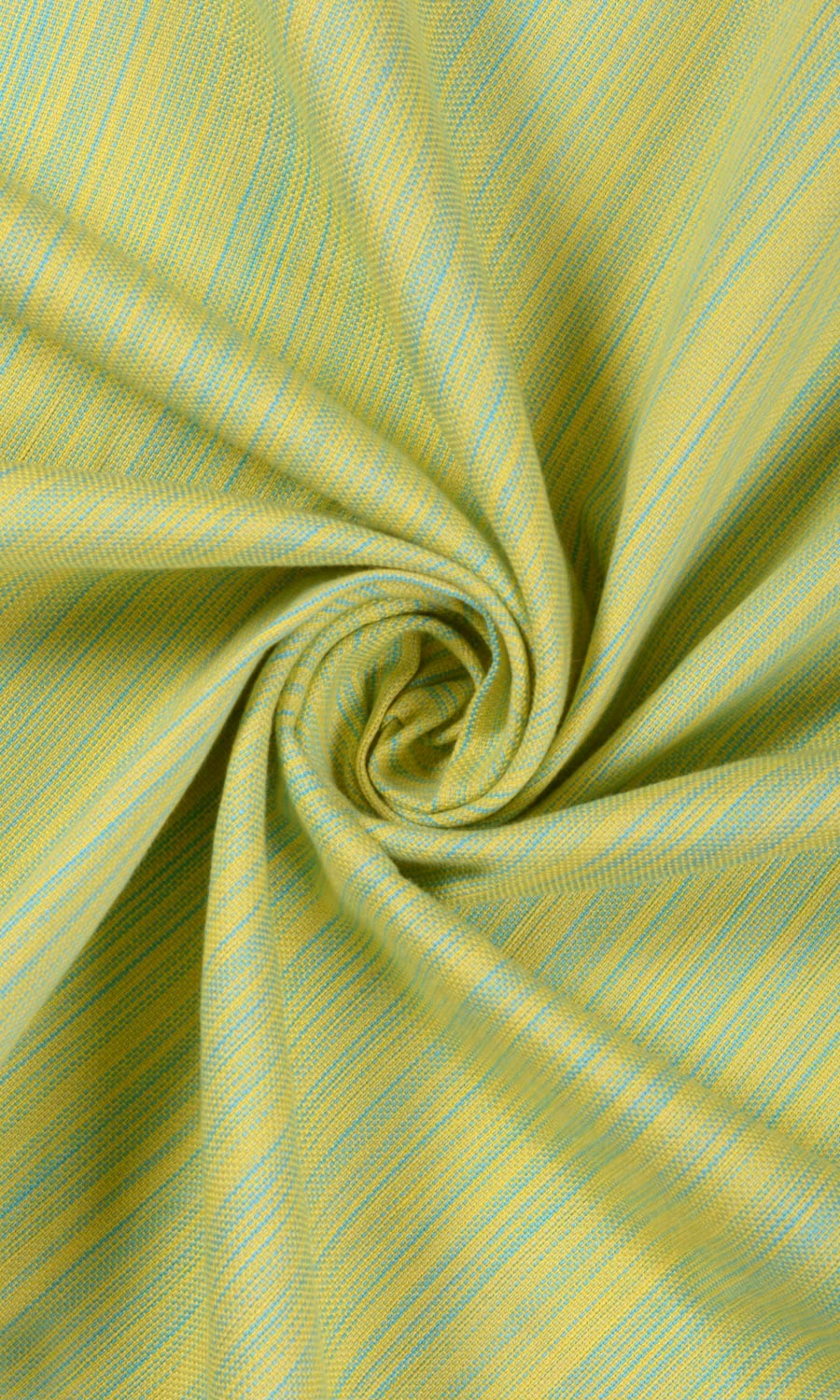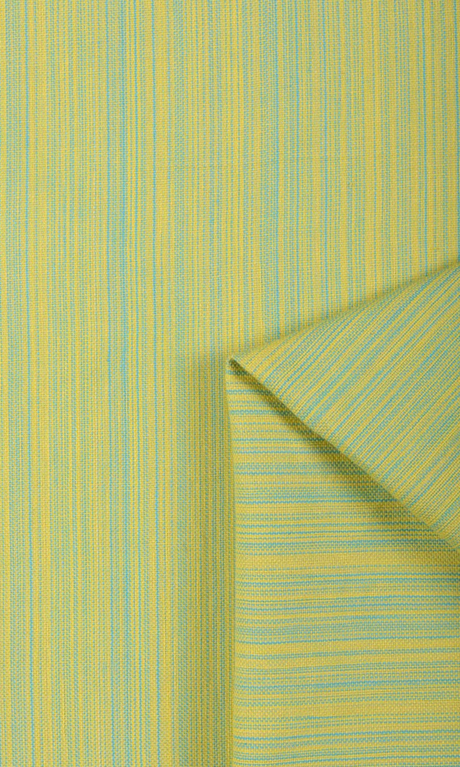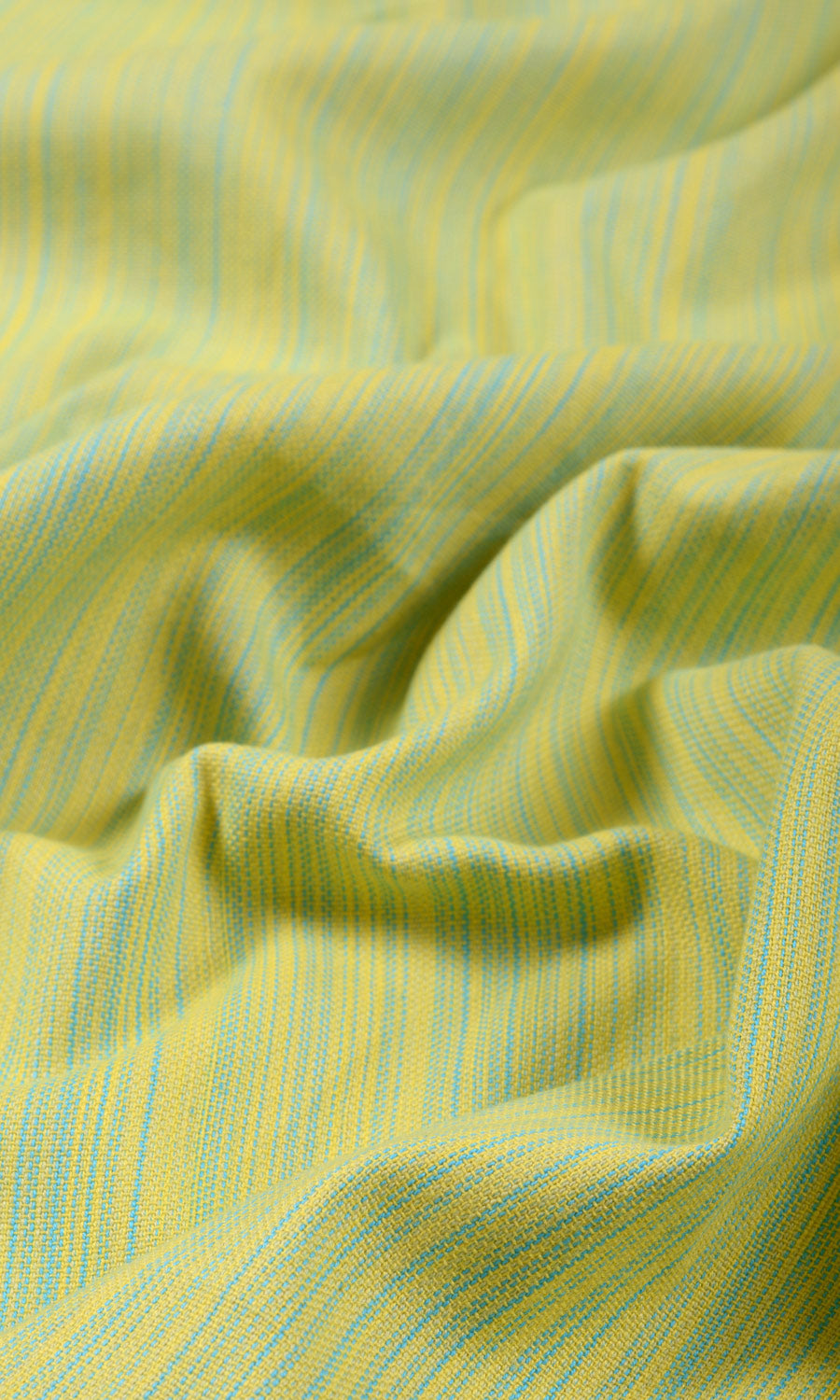 Part of our swoon-worthy cotton collection, Ocarina features a tightly woven pattern bursting with textural interest. The narrow weave of blue and yellow transforms into the most wonderful shade of green when seen from a distance. With a raw, softly tactile feel, Ocarina feels like a modern take on cotton, so relaxed and full of flavor. This medium weight cotton falls beautifully and never fails to impress - no matter what the heading style - from the fullness of pinch pleats to the minimalist look of the eyelet heading.