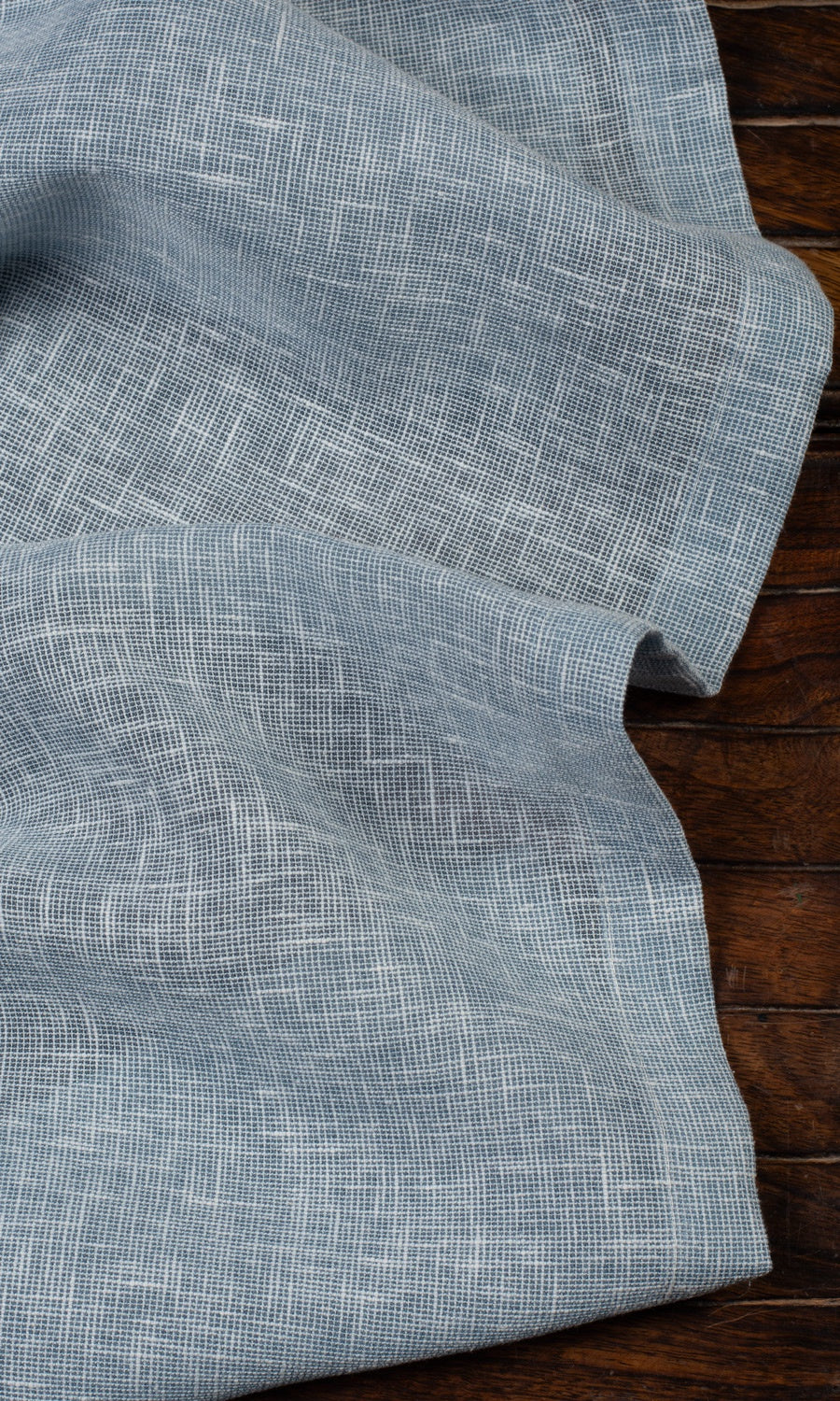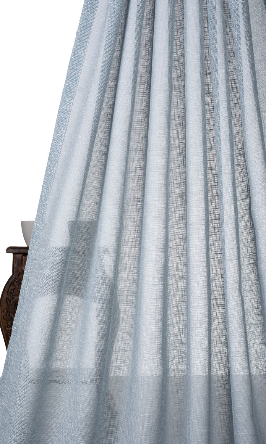 This breezy blue beauty speaks aplenty with the softest of whispers. Its soft pastel hue is a distraction-free stage for the tactile texture and sheer weave to shine. Gently diffusing light, 'Ocean Ash' paints the interiors of the home with dramatic moire shadows. With its blue palette, this sheer is perfect for a coastal home to show its rustic leanings and sea-inspired palette.