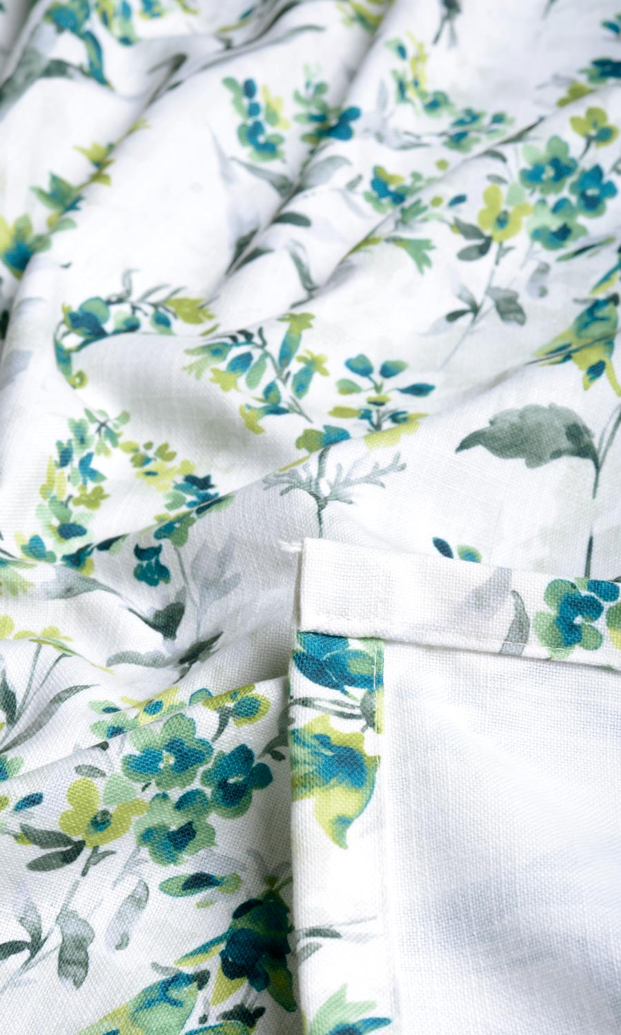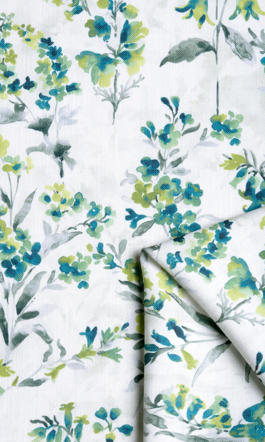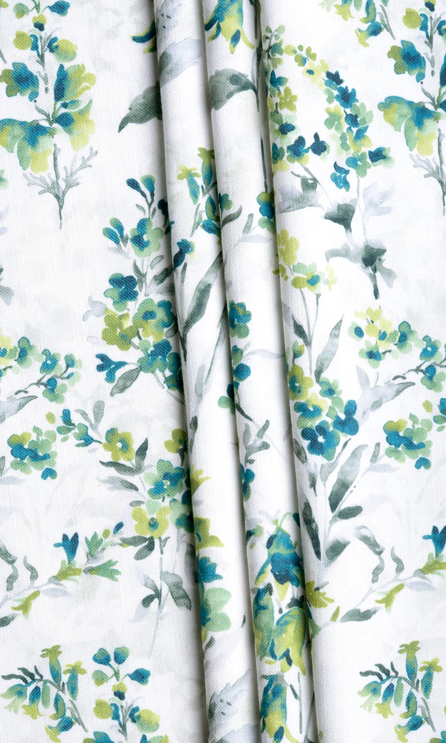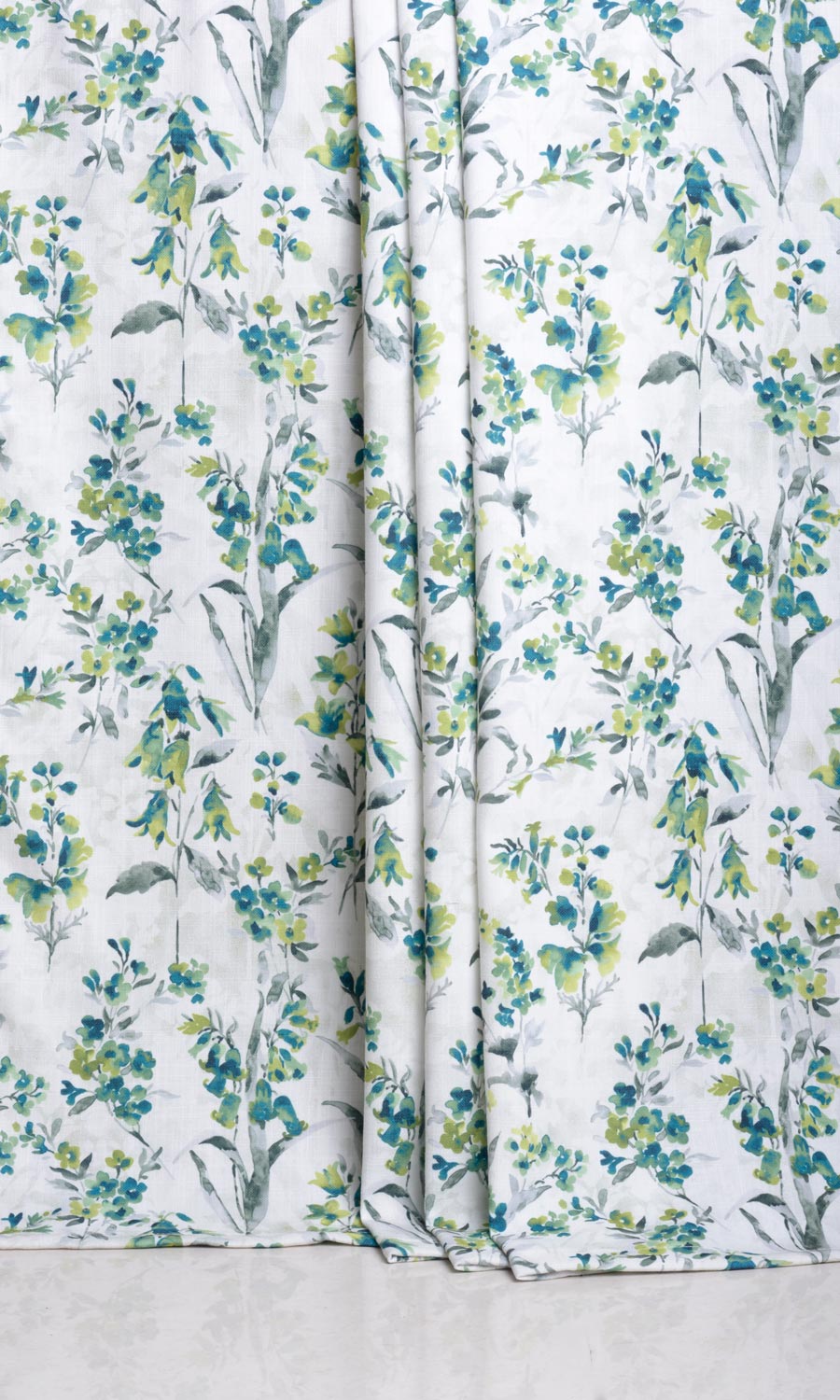 Bring the pleasance of nature into your home with this beautifully designed floral print fabric. The rejuvenating nature-inspired theme enables window treatments in this enchanting fabric to imbibe an outdoorsy experience. Featuring a modern take on florals with its contemporary color palette of white, blue and green, this window dressing can mingle with many decor styles.