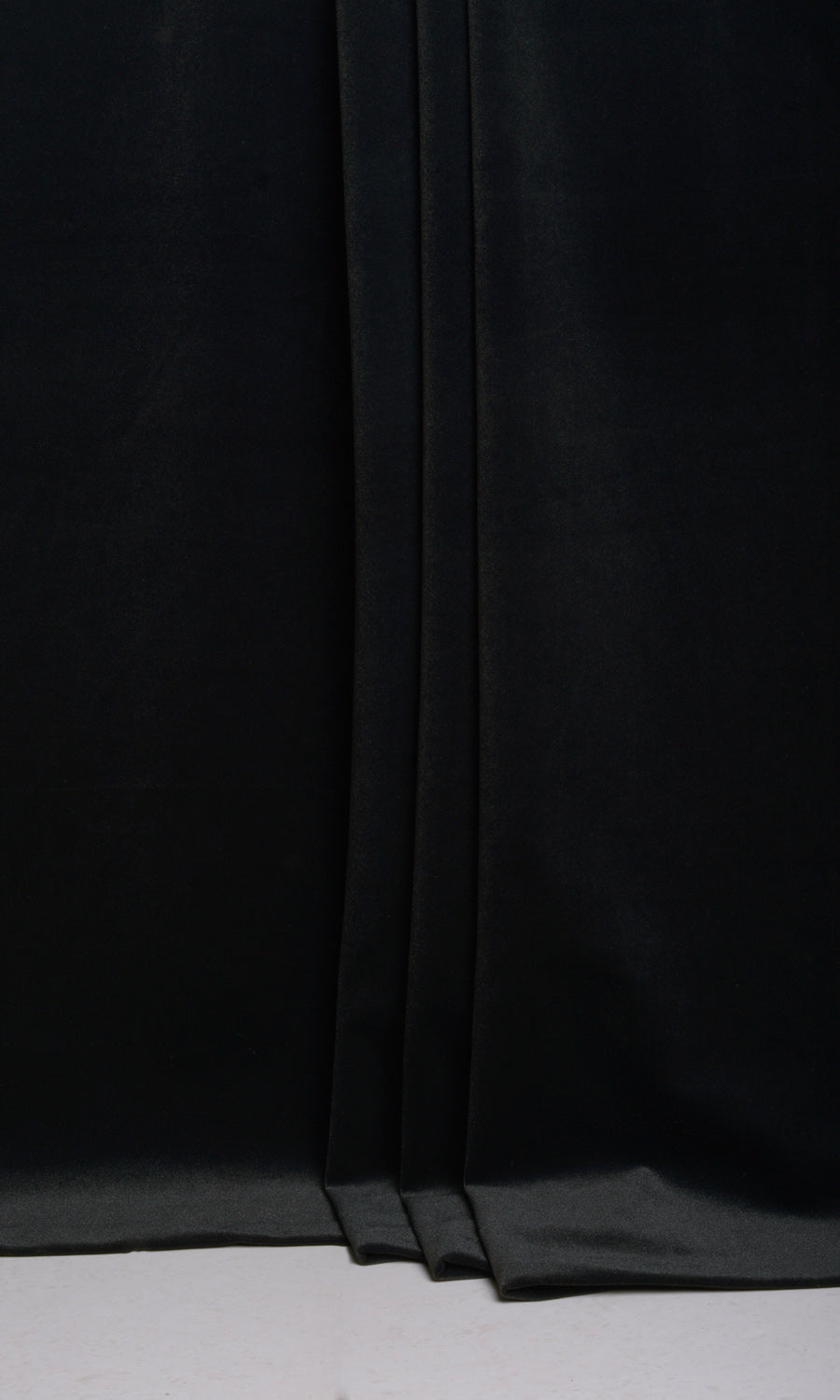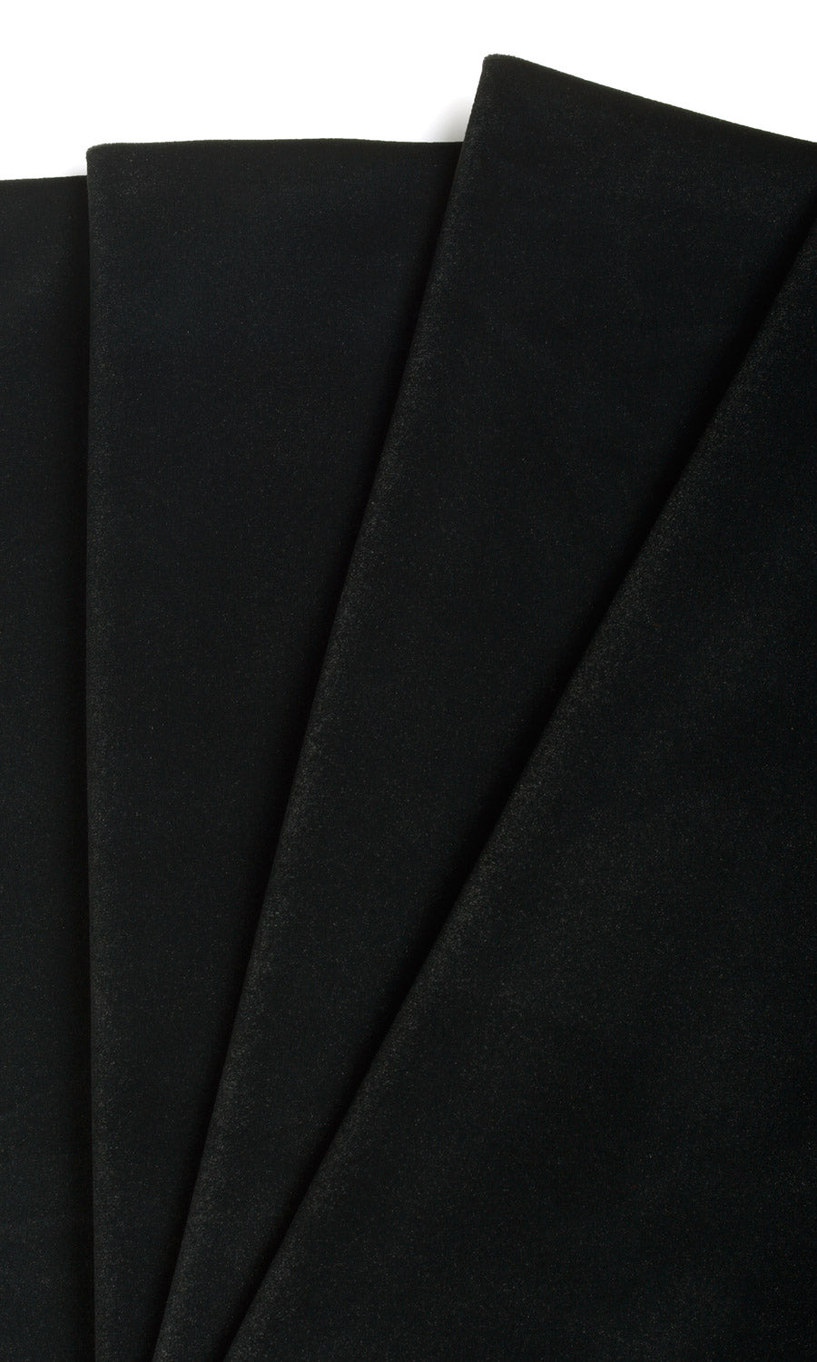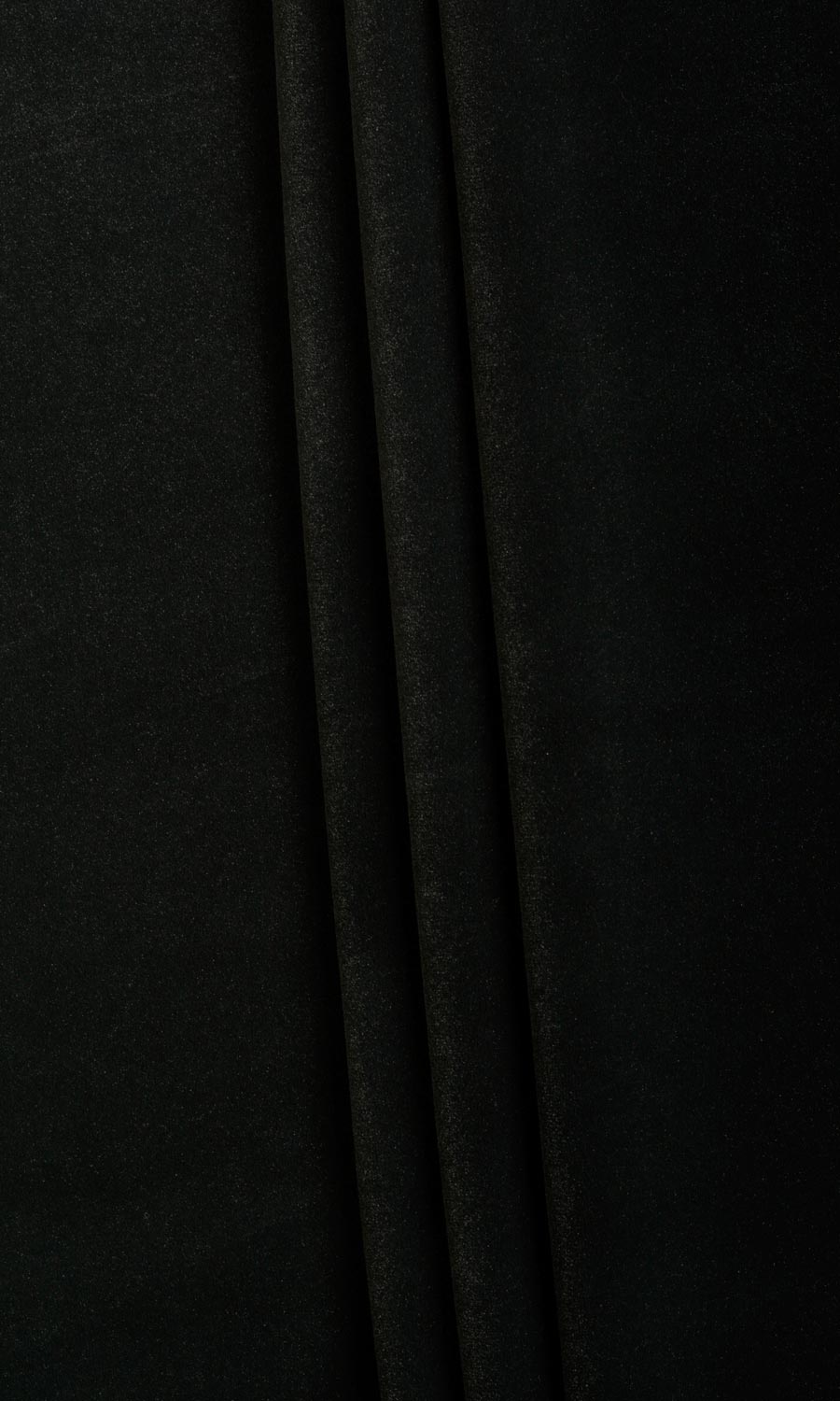 Create a cozy den, heavy with mood and sophisticated style with this pure black velvet window dressing. Letting every color speak its own story, black helps to deepen a space and to feel the sense of enclosure. The plush piles and smooth sheen speak opulence and the pitch black accents it with a seductive flair. Adorned with shapely folds as in pinch pleated drapes and relaxed roman shades, ‘Odyssey’ promises to be a conversation starter.