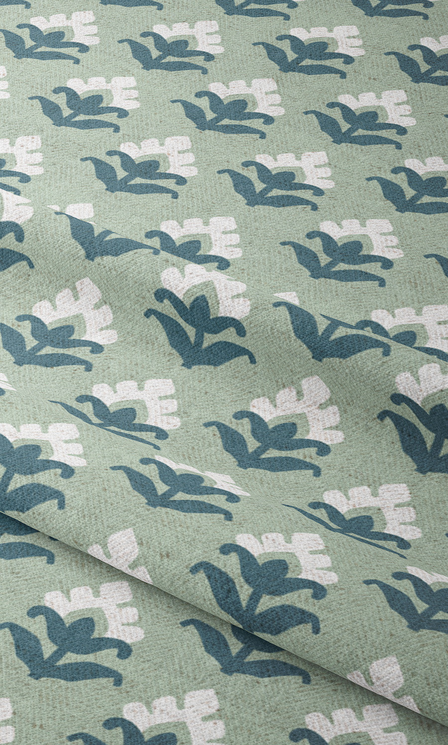 - Its tranquil seafoam green canvas upon which teal and white bring a garden to life
