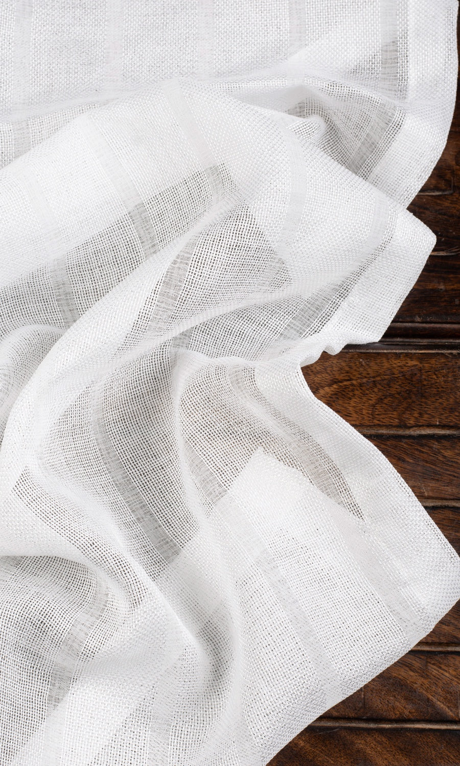 The epitome of simplicity and ethereal charm! A pure white sheer with a wee bit of detail hidden in its textured stripes, 'Opal Glaze' offers the dreamy elegance that sits right in a coastal home, a country cottage and a modern condo with equal ease. Light, breathable and timelessly elegant, this sheer is characterized by a calm, uncluttered visual appeal and guarantees privacy during the day while welcoming light.