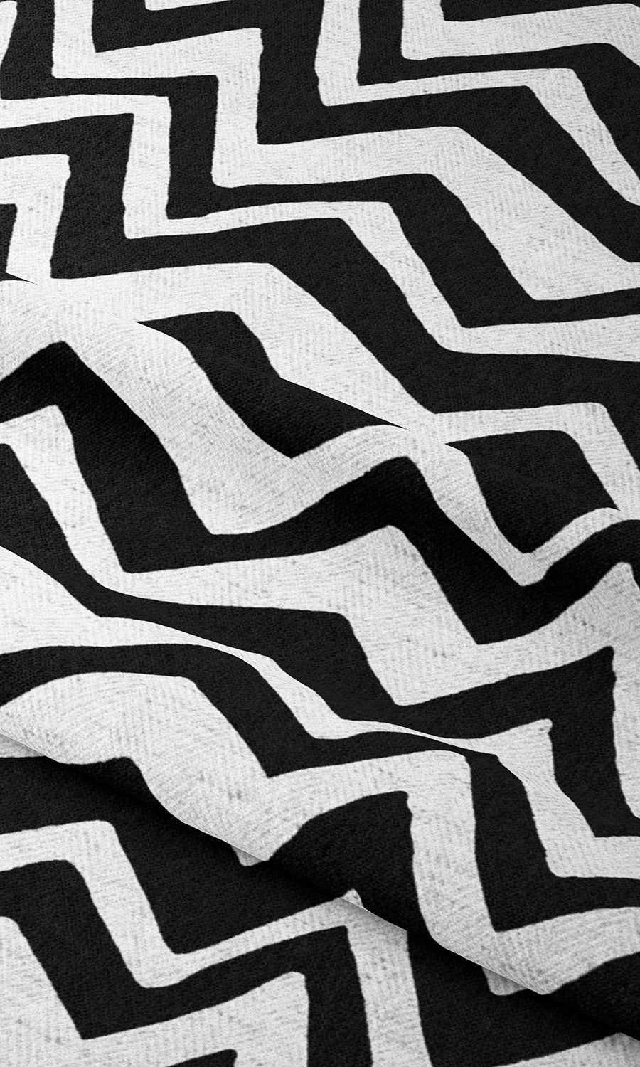 - Its abstract chevron pattern that carries a fervor for raw expression in its uneven angles and bold asymmetric stripes