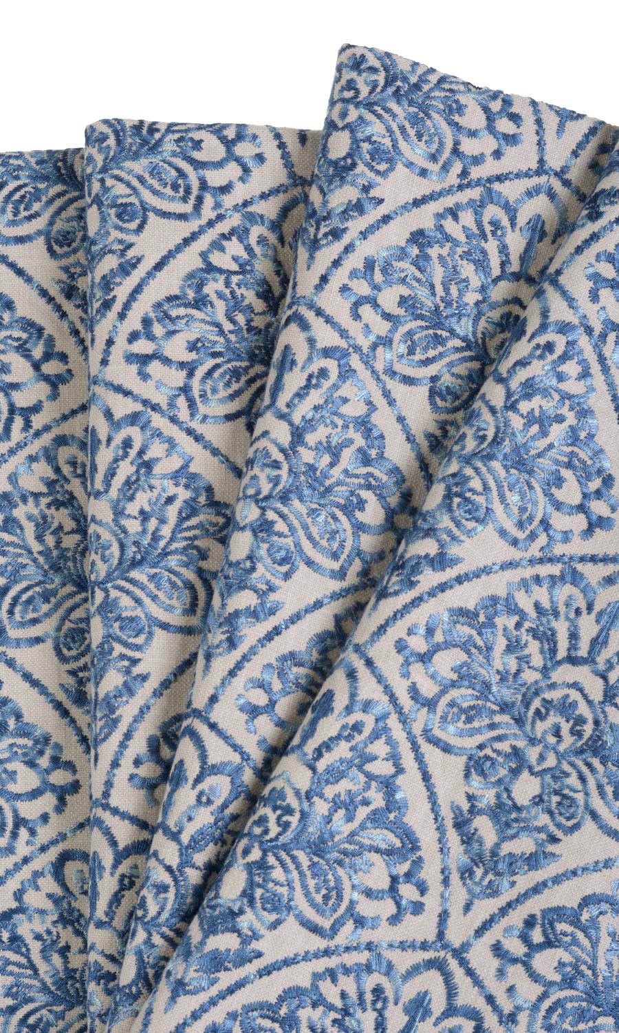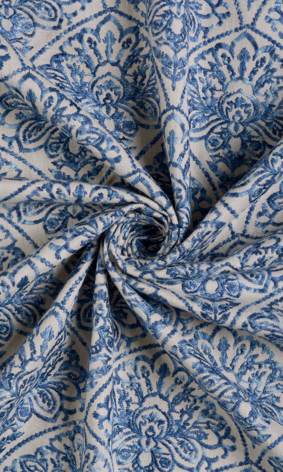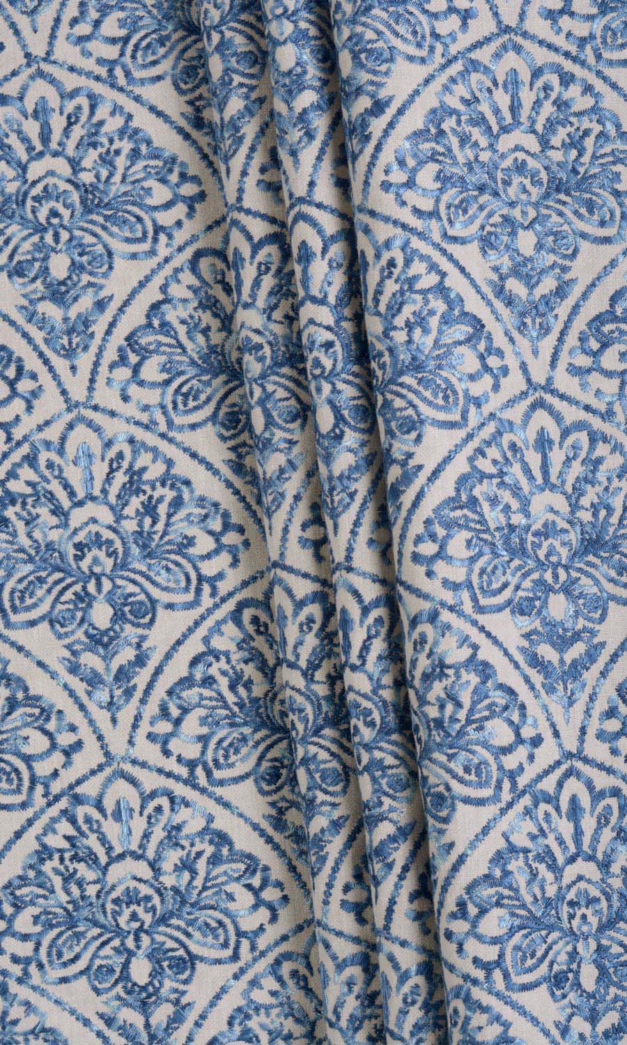 Some things are so beautiful that these have to be seen to be believed. Like Pacific Bay, a fabric so stunning, it leaves you silent in admiration. Its pale beige surface is embroidered densely with a French floral pattern inset within geometrical outlines. The ink blue of the motif looks spectacular against the beige backdrop. Pacific Bay is a drape of luxury for your interiors.