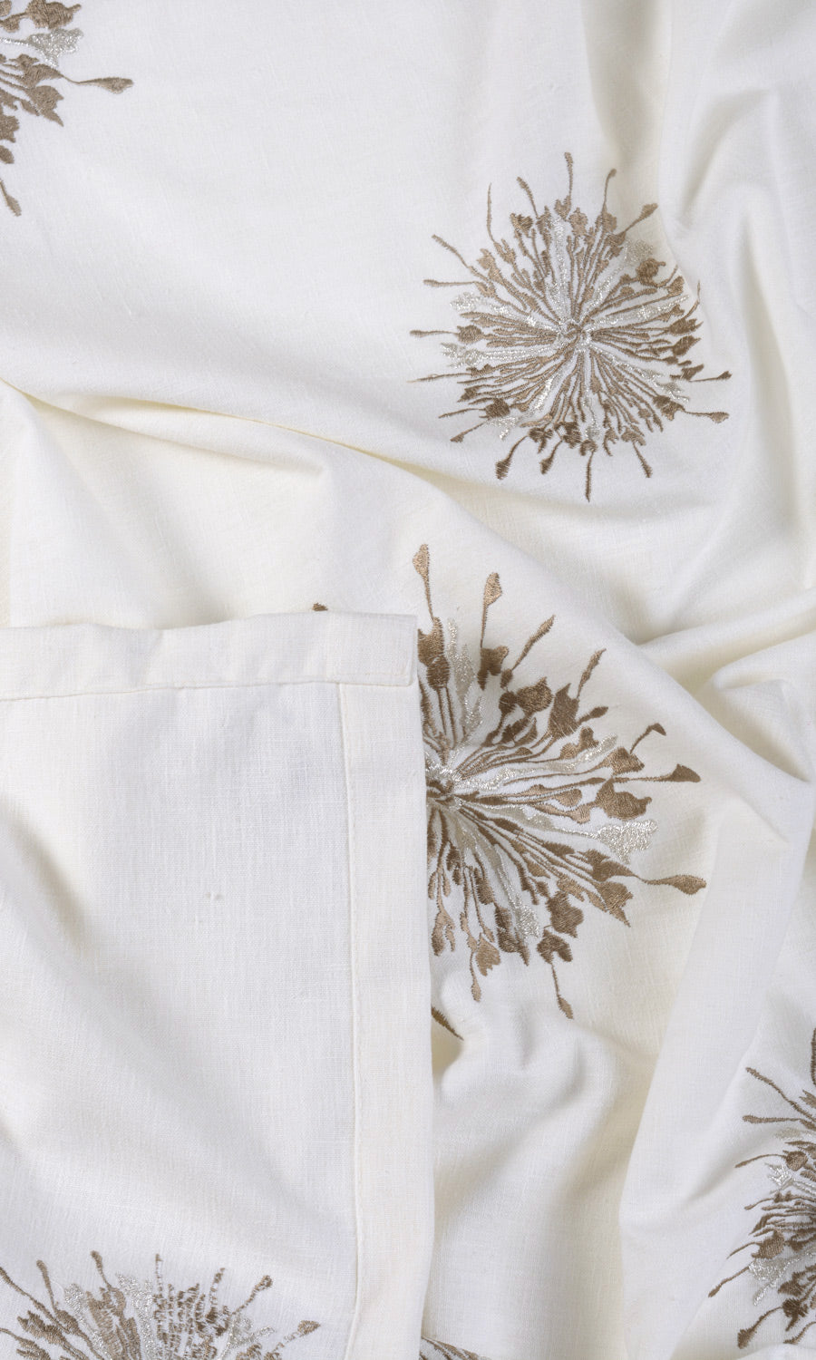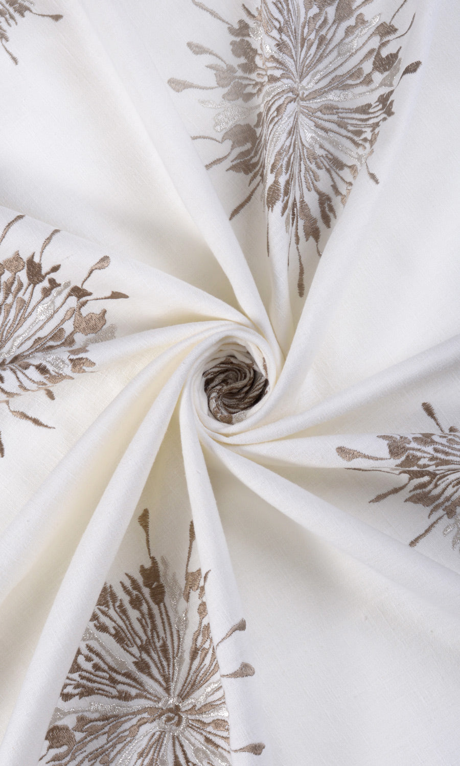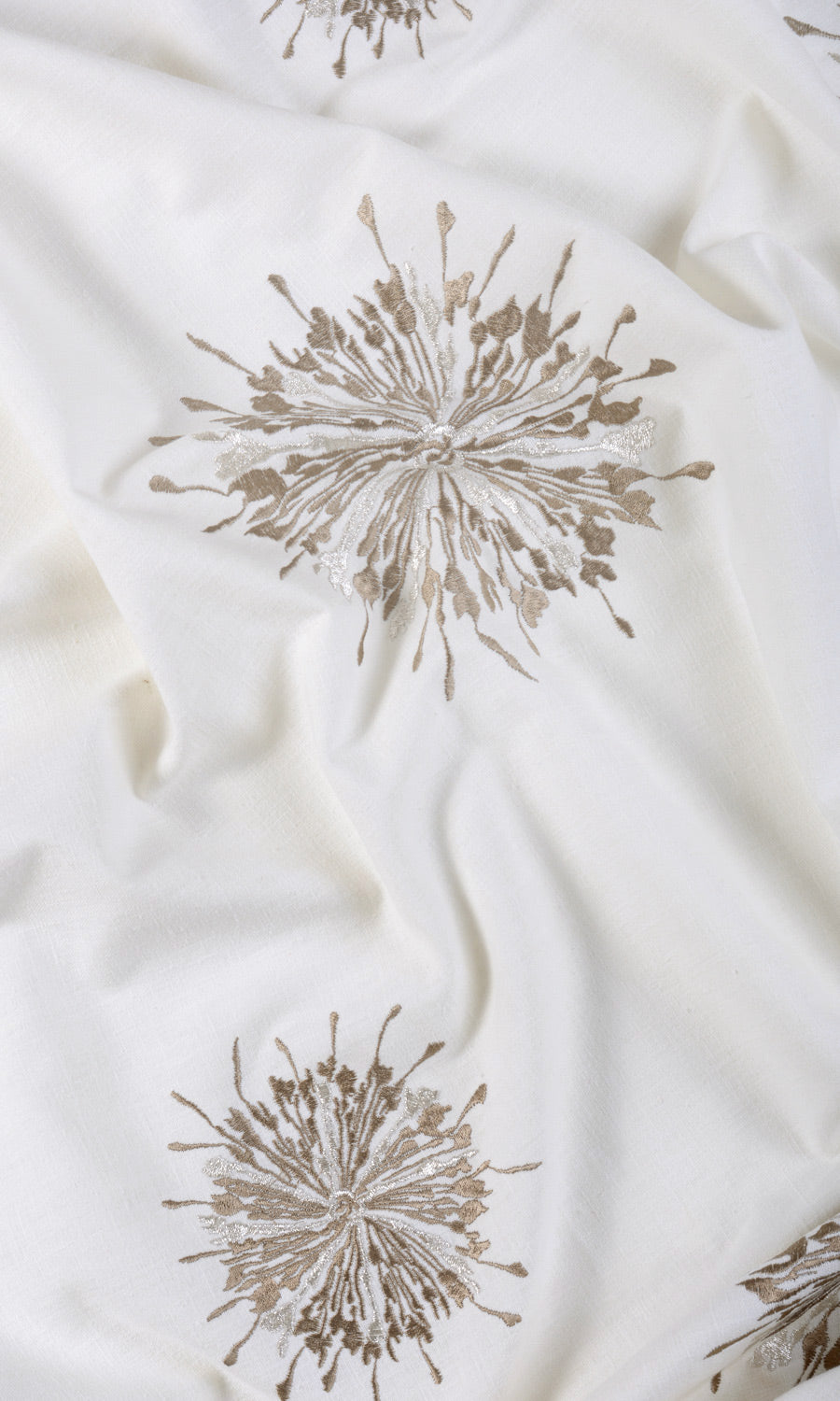 - The daintiness and textural beauty of its embroidered sunburst motifs
