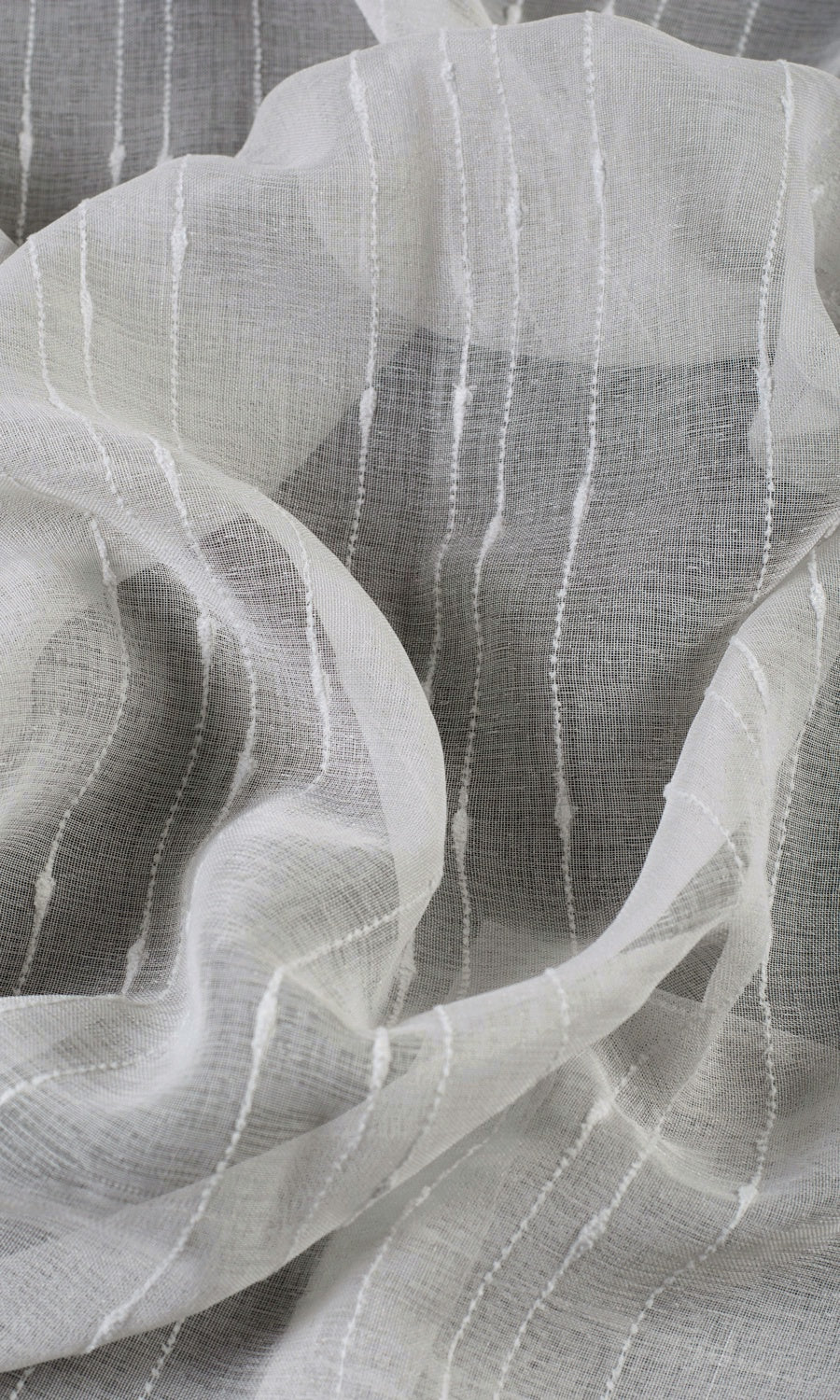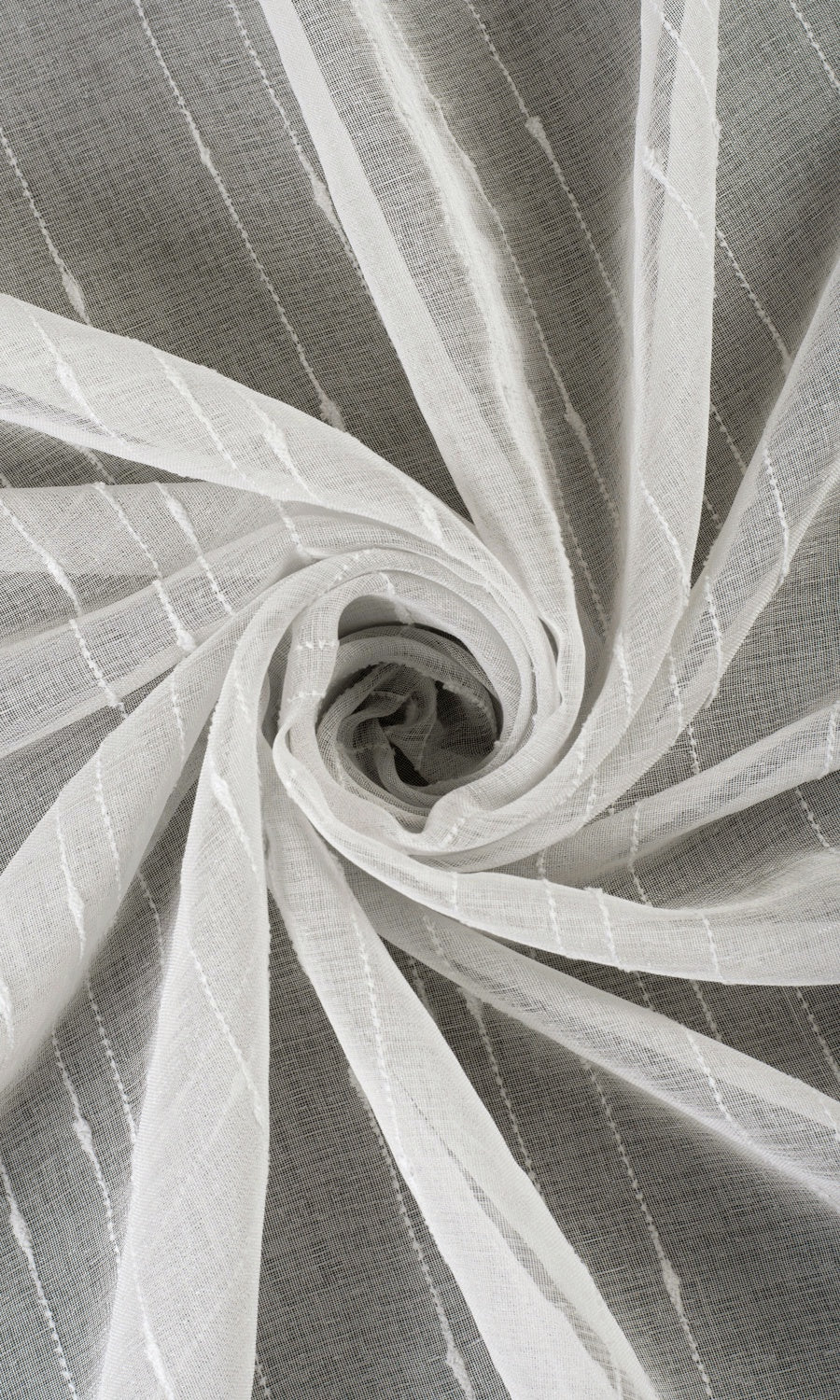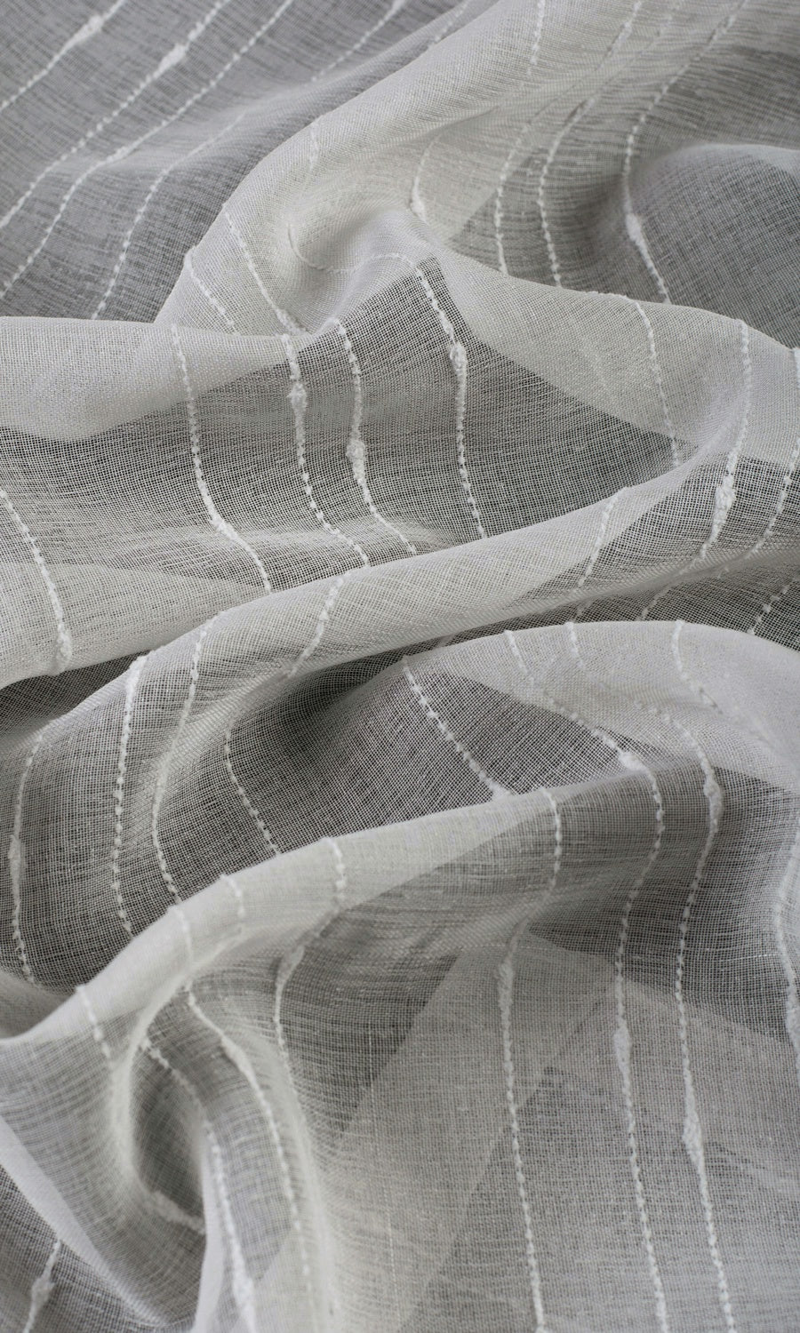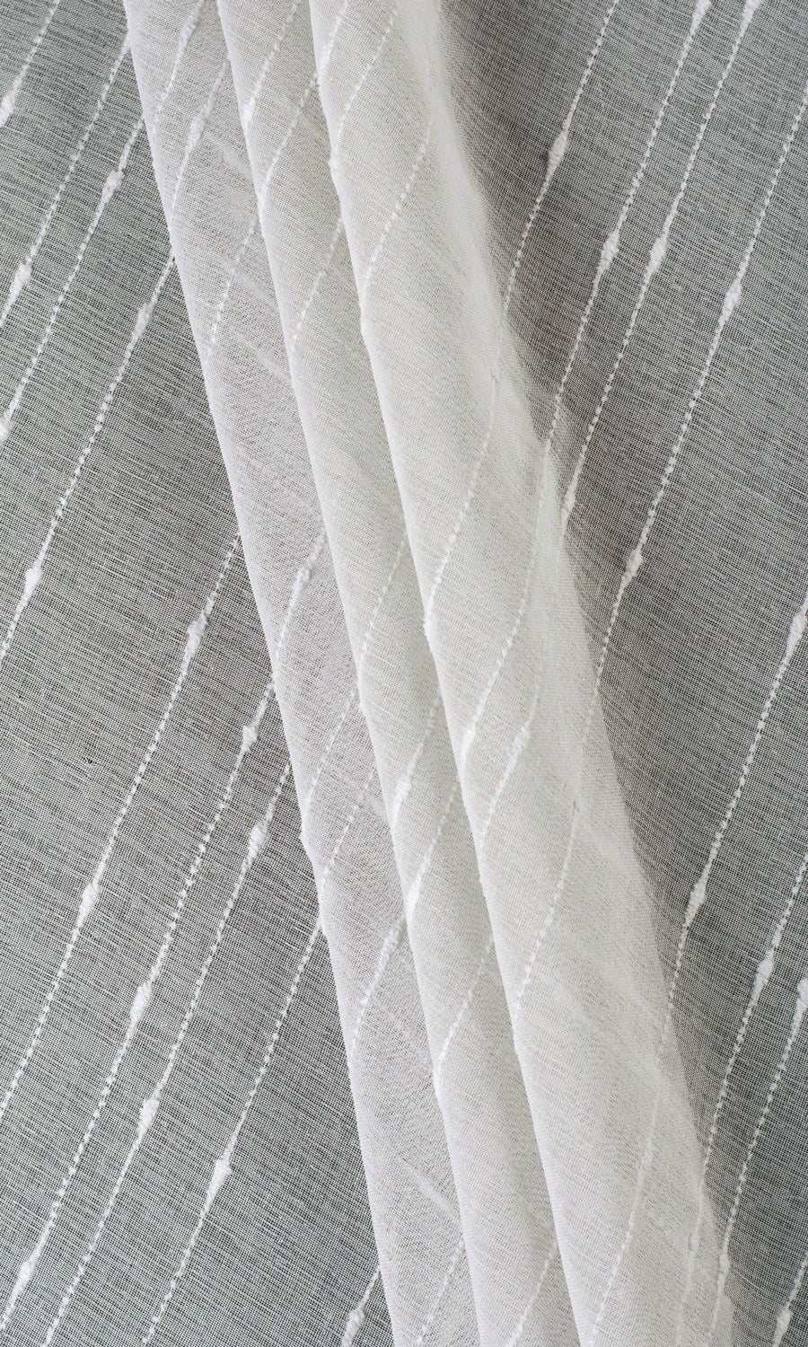 A grey sheer with sleek decorative stripes for a minimalist home that appreciates a bit of detail. So, you can not only enjoy bright daylight and fresh air but also an aesthetic moment in your decor while staying well within a restrained palette. Count on the neutrality of gray to blend with any palette and decor style.