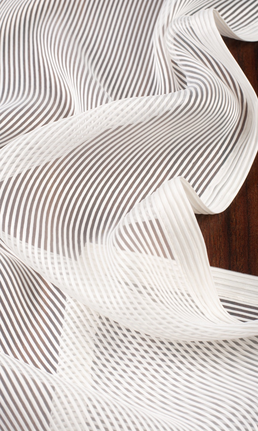 Merging two timeless themes - the immaculate beauty of white and the simple elegance of stripes - 'Pale Snow' vouches its candidature for a lifelong addition to any home. Playing hide and seek with its woven pattern, light streams into the home painting veined shadows on the walls. Finish a modern home with this self-striped sheer that offers the uncluttered aesthetic of white and the clean-lined finishes that speak to its minimalism.