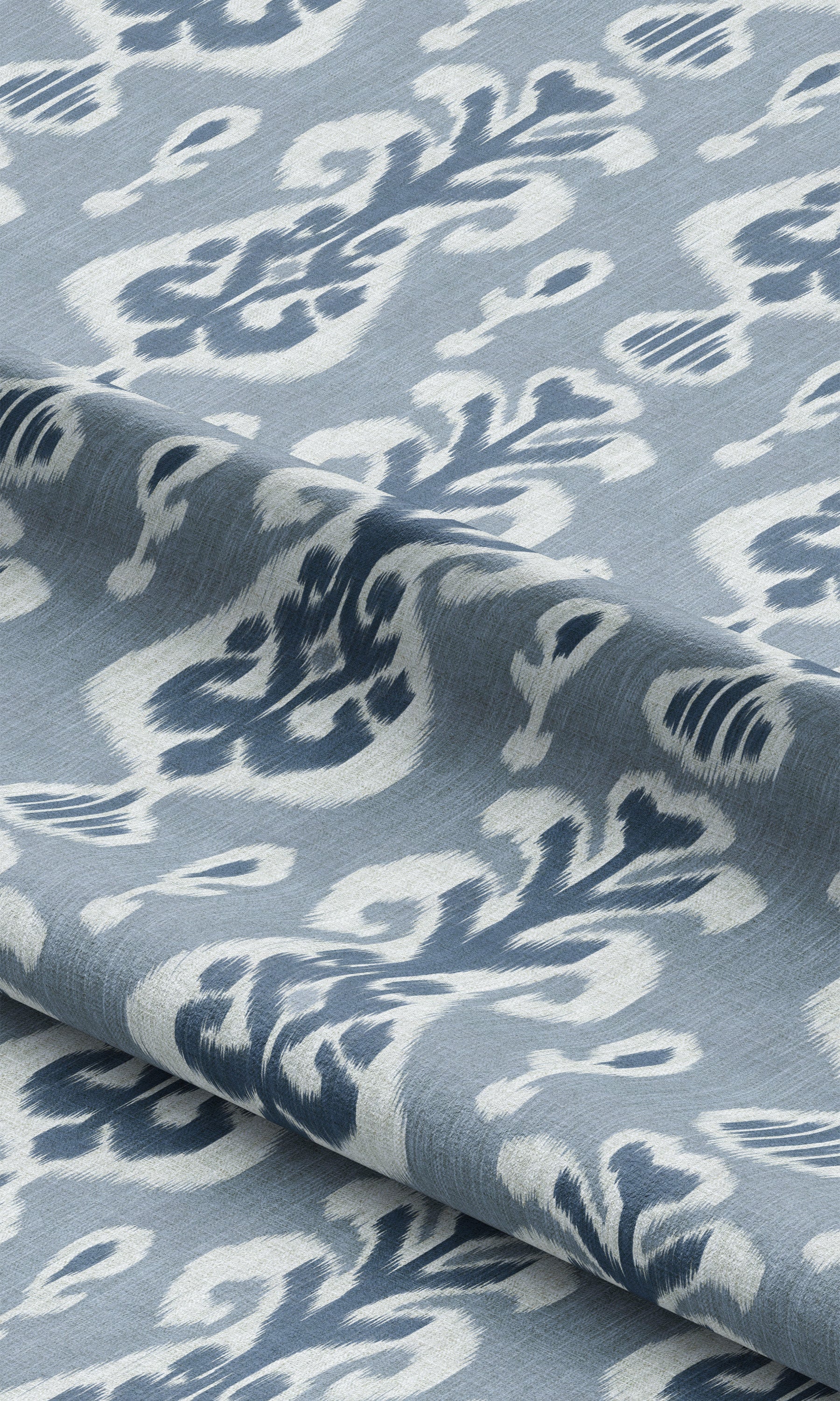 - Add to maximalist spaces: Introduce Peaceful Blue ikat floral curtains to maximalist homes to add more life to their pattern mix. Their painterly blooms and blurred edges bring an artisanal richness that pairs beautifully with bold tones and eclectic motifs, completing the space with a look that feels carefully curated and personalized.