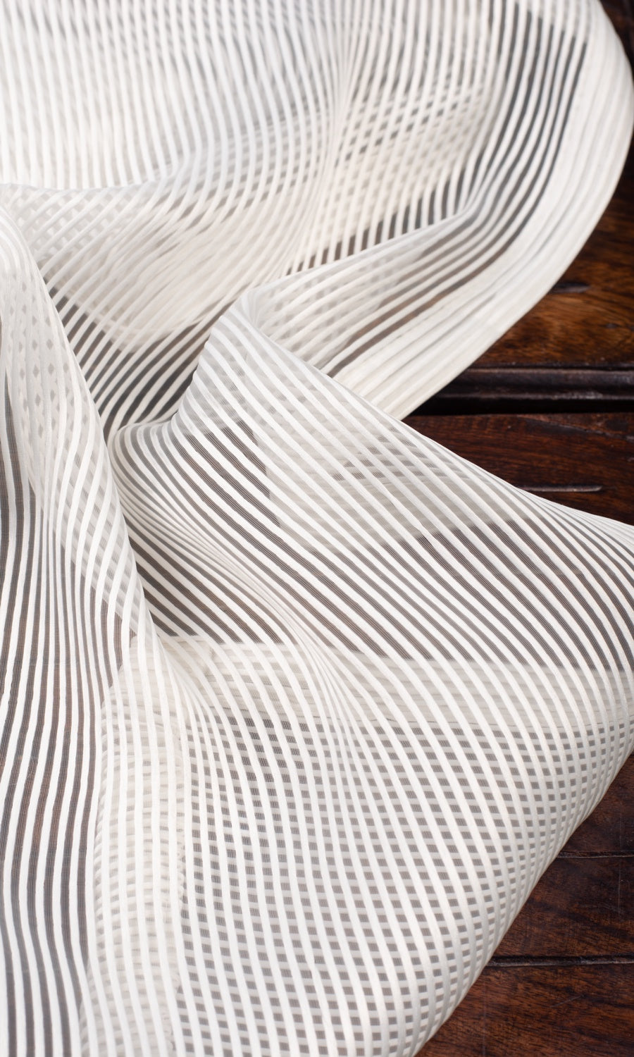 Merging two timeless themes - the immaculate beauty of soft cream hue and the simple elegance of stripes - 'Pearly' vouches its candidature for a lifelong addition to any home. Playing hide and seek with its woven pattern, light streams into the home painting veined shadows on the walls. Finish a modern home with this self-striped sheer that offers the uncluttered aesthetic of cream and the clean-lined finishes that speak to its minimalism.