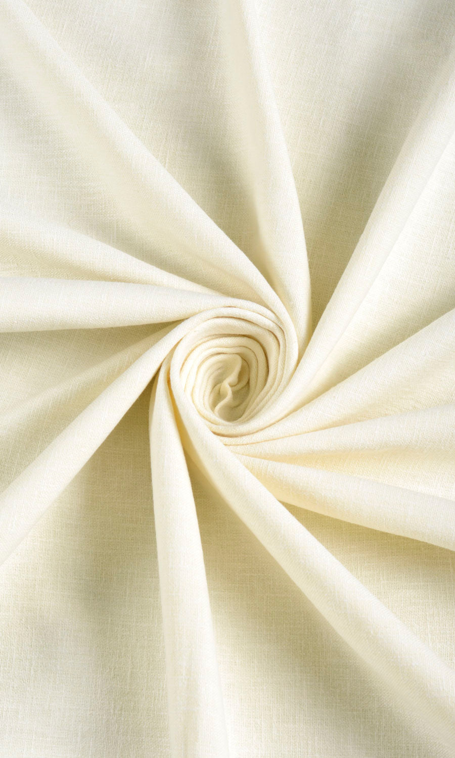Got an irresistible attraction to whites? This creamy white drapery fabric is for such white-holics who love to dress their windows as spotless beauties. The yellow undertones, a sunny treat to the eye, keep them from seeming too clinical. Bearing the goodness of both natural and synthetic fibers, this cotton blend fabric makes for a low-duty window treatment - highly recommended for busy homes. As pinch pleats drapes and front-slatted or relaxed roman shades, this solid-colored fabric serves its best look.