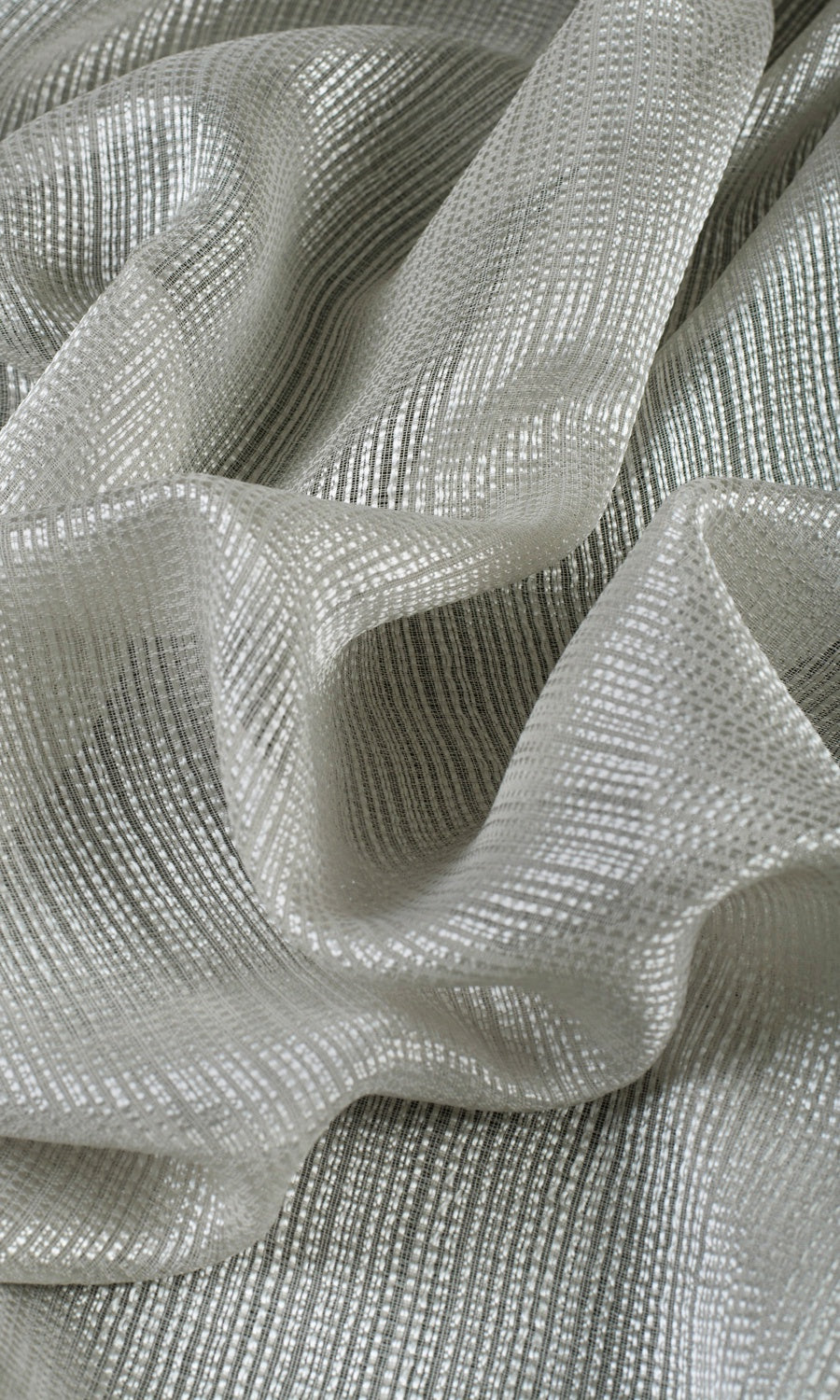 The most striking aspects of a decor style are sometimes conveyed through the subtlest detail, as in the textured weave of this sheer that hides a delicate stripe pattern. Airing a minimalist aesthetic with its clean-lined pattern and a neutral palette of grey, 'Pewter Gleam' offers dreamy elegance with a modern sophisticated edge. Keep your home bright and breathing with this sheer at your window, while guarding your privacy during the day.