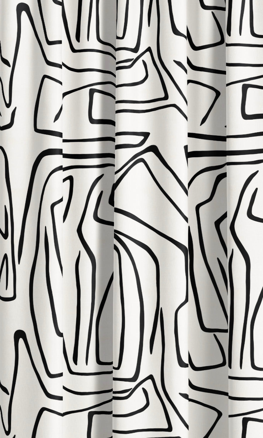 - Balance a vibrant room: Harness the neutrality of Pharon abstract print curtains to counterbalance the visual energy of bold colors and intricate patterns. Their black and white palette allows vivid tones to take center stage, while their striking contrast adds drama to the room without overpowering the scene.