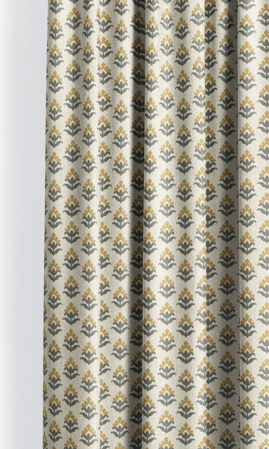 - Pick a suitable heading style: Style Piano Swan block-print floral curtains with a heading style that feels right for the mood of the room and the overall leaning of your design. Consider flat panel tops for their unfussy lines, rod pockets for their charming frills, and pinch pleats for their tailored grace.
