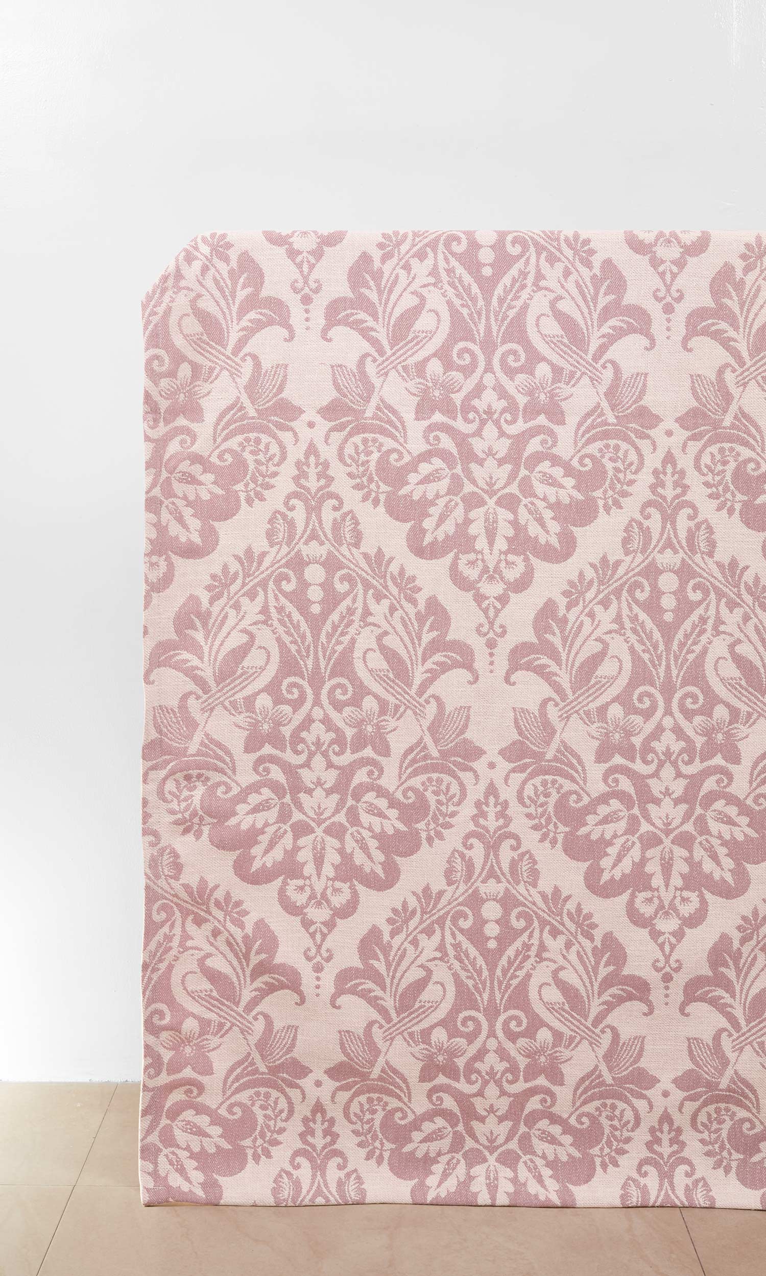 If you want a drape that has vintage charm, contemporary sensibilities and feminine feel, this fabric shall definitely wow you. Its twill woven base and light pink on dark pink color scheme looks all the more pretty with a large sized stylized foliage motif. While this fabulous fabric works well across decor style, our stylists recommend it especially for vintage and bohemian rooms. This fabric looks extra graceful in pinched pleats curtains.