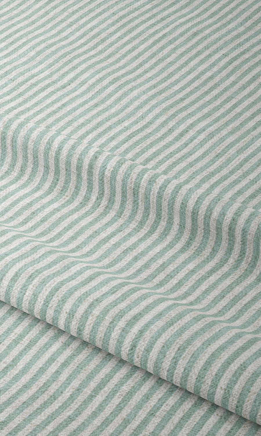 Update your decor with this fresh fabric that features a charming pin-stripe pattern on a rich herringbone weave base. Offered in coastal shades of aqua blue and eggshell white, this fabric will add an enlivening dimension to your kitchen or bedroom when fashioned into modern style drapes roman shades. While its repeating stripes make it a great candidate for windows that need optical-elongation, its vibrant blue makes it wonderfully suited to cottage-chic and contemporary decorative plans.