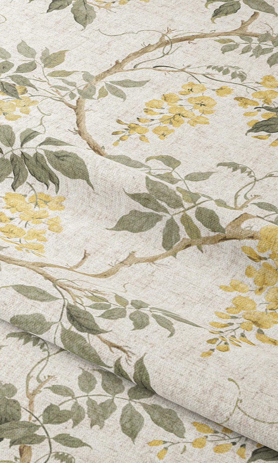 'Playful Elation' Floral Vine Print Made-to-Measure Shades (Yellow/ Olive Green)