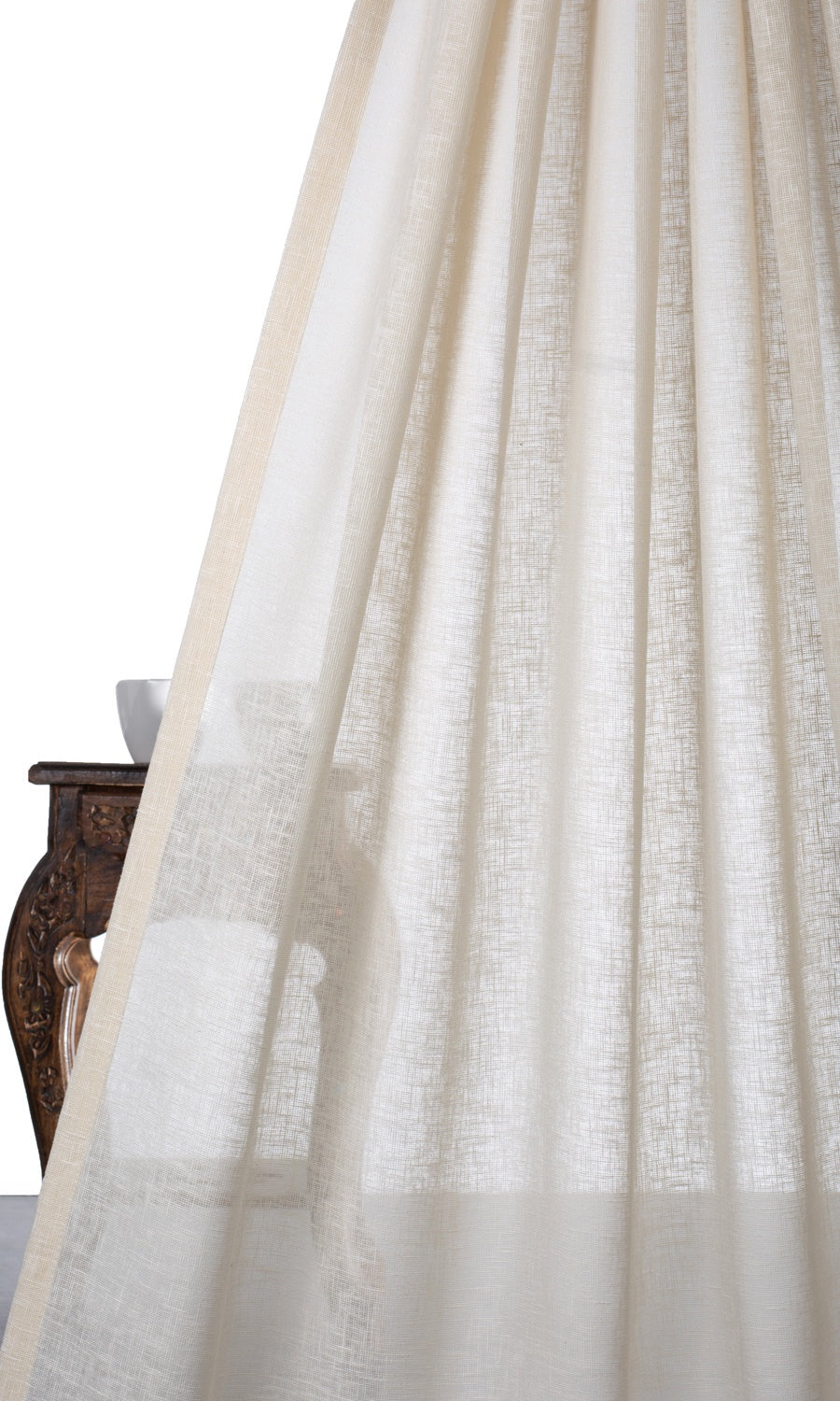 A delicate white sheer that exudes quiet sophistication, infusing your space with soft, diffused light. This fabric featuring a gauzy weave and subtle texture gently filters sunlight without compromising daytime privacy. Its pale beige hue adds a touch of serenity and warmth to any room, offering a serene and graceful backdrop. 'Plush Whisper' is the epitome of understated elegance — a soft, airy veil that enhances the beauty of your home with its timeless charm, providing both privacy and a radiant, glowing ambiance.