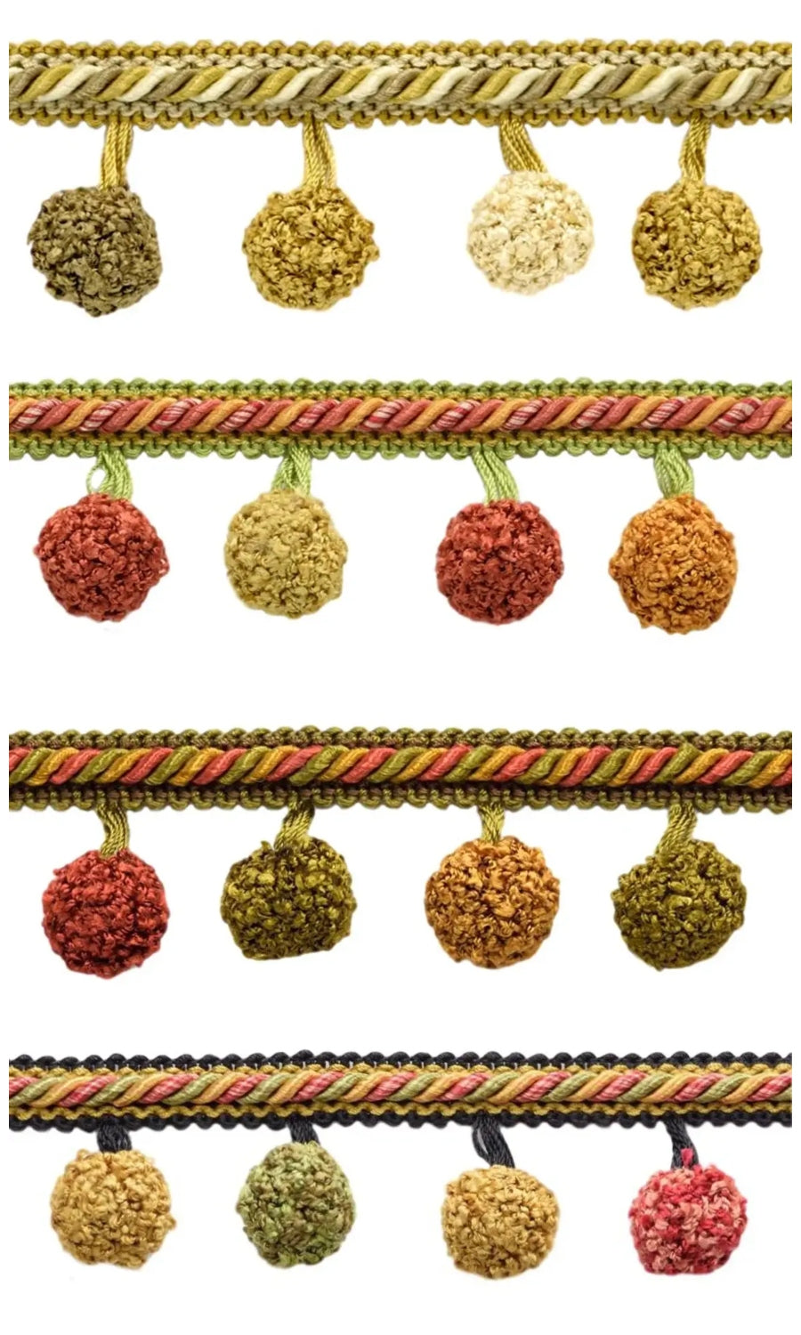 This ornate pom pom trim measures 1-3/4 inches (44mm) from top to bottom, and is available in 4 colorways.